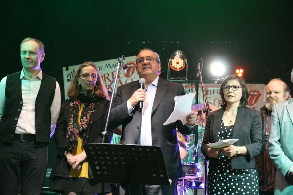 Monsieur le Maire, Fabien THIEME - entouré d'élus du Conseil municipal dont l'Adjointe aux Fêtes, Virginie MELKI-TETTINI - a reçu chaleureusement le public avant de monter sur scène pour annoncer à tous les groupes de ce soir :