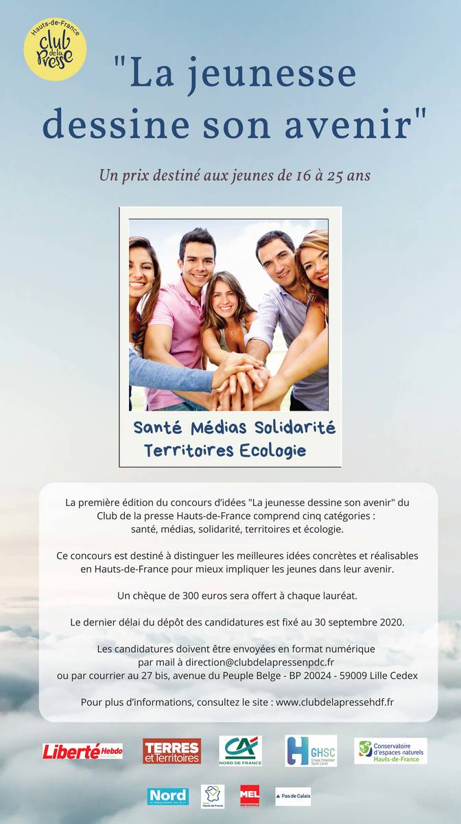 Les candidatures du nouveau prix du Club de la presse Hauts-de-France sont ouvertes. Destiné aux jeunes des Hauts-de-France âgés de 16 à 25 ans, le concours "La jeunesse dessine son avenir" récompensera les meilleures propositions concrètes pour mieux imaginer l’avenir des jeunes autour des thématiques des médias, de la solidarité, de la santé, de l'écologie et des territoires en Hauts-de-France.