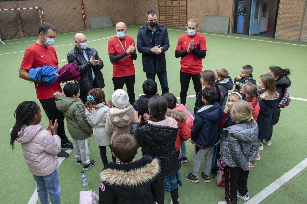 Aux côtés des éducateurs sportifs et dans le respect des gestes barrières, ils ont ont remis de beaux bonnets aux jeunes coureurs pour les féliciter de leurs efforts durant le Kid'Cross. Cette activité sportive, bien développée et qui revient chaque année, s'est déroulée sur toute la semaine et a mobilisé pas moins de 160 enfants sur 8 classes dans les salles du Caillou, Aragon et Dumont. En raison de la crise sanitaire que nous connaissons actuellement, ces animations n'ont pas pu se dérouler par rencontres inter-classes comme à l'accoutumée, mais bien classe par classe. Cela n'a pas freiné les jeunes sportifs dans leur élan de motivation pour autant et c'est avec entrain qu'ils ont passé toutes les épreuves de motricité et d'initiation à l'endurance, qui sont des prémices de sensibilisation à l'action Bouch'ton Ecole qu'ils feront durant leurs classes du CE1 au CM2.