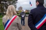 📜 La délégation s’est ensuite dirigée, rue Jules Vallès pour un dernier hommage. M. Joël Boute, Conseiller municipal délégué au protocole, aux affaires militaires et patriotiques a lu le message de la Fédération ACPG-CATM-TOE. Accompagné d’Isabelle Lachaussée et du Premier Magistrat, ils ont ensuite déposé des gerbes de fleurs devant la Stèle A.F.N. et T.O.E.