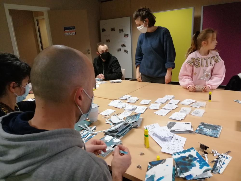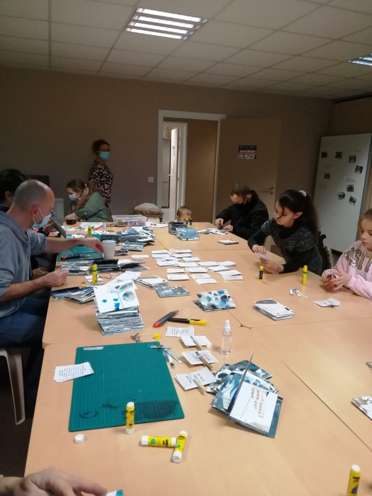 Le premier confinement n'ayant pas permis que se tienne l'ultime séance de travail, le façonnage du livre a enfin pu se tenir le mercredi 9 décembre au Centre Social de la Briquette.