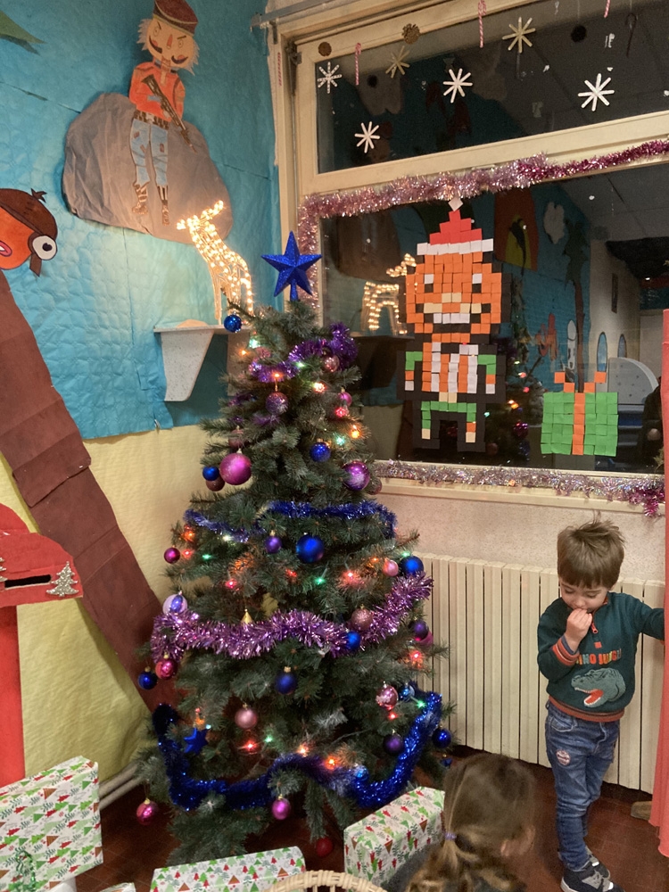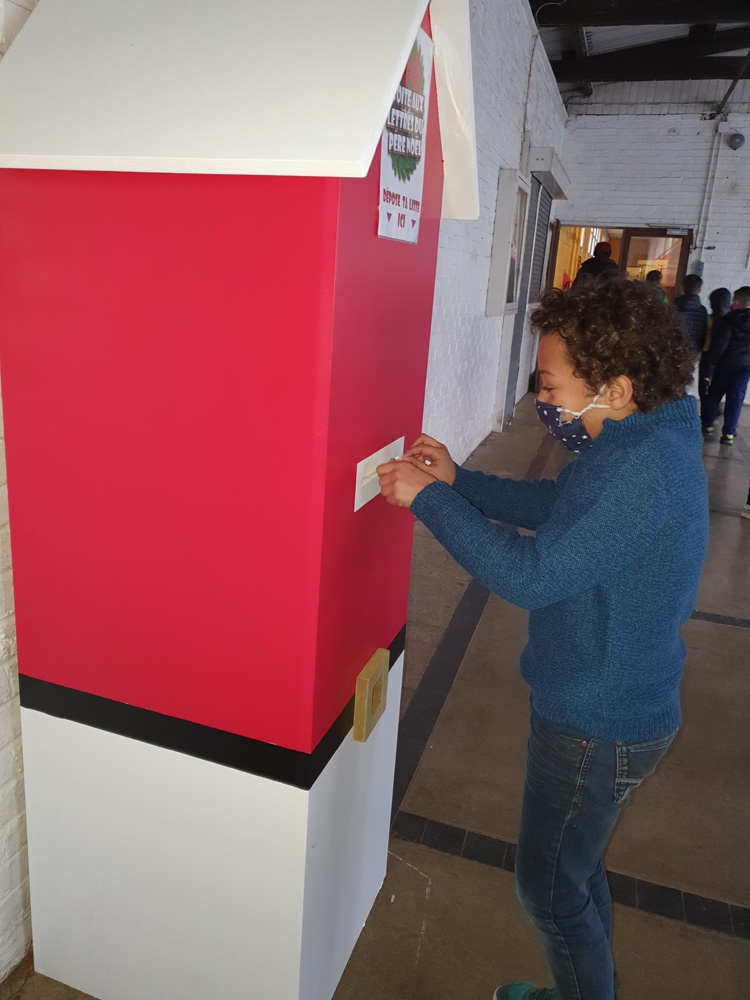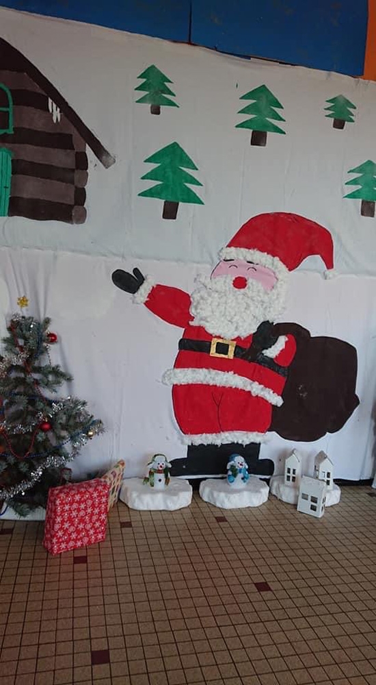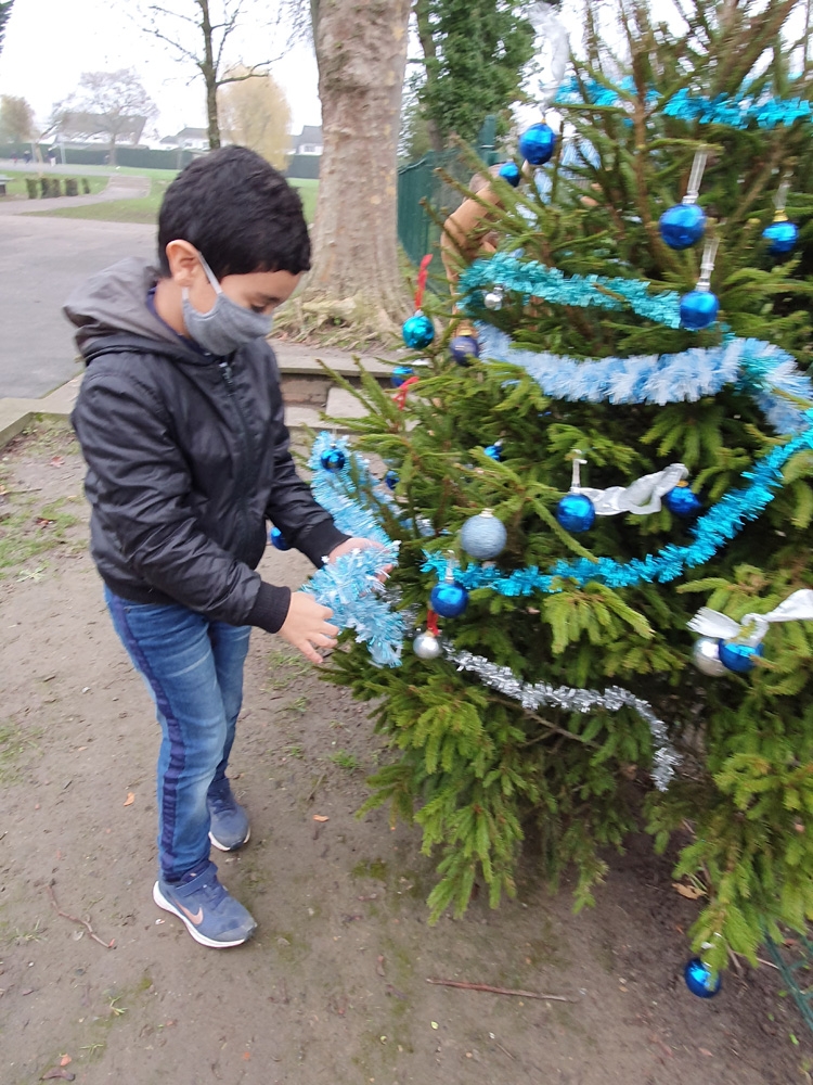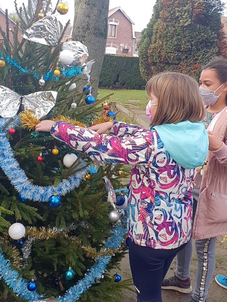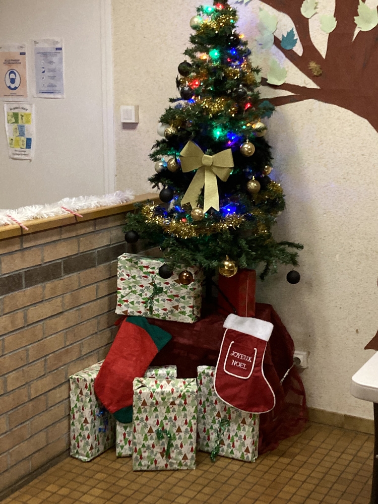 Mais c'est bien plus tôt au début du mois de décembre qu'un beau matin Oh Oh Oh…, les enfants ont découvert sous le préau de leur école une étrange boîte aux lettres : " LA " boîte aux lettres du Père-Noël ! Il n’en fallait pas plus pour attiser leur curiosité et leur envie d’écrire au plus grand distributeur de rêves... Un sapin offert par la ville a été planté dans la cour de récréation. Dès sa découverte, les enfants se sont relayés avec un grand enthousiasme pour le décorer. Guirlandes, boules, nœuds ont été pris d’assaut pour habiller le roi des forêts afin qu’il brille de mille feux sous les regards des petits et des grands…