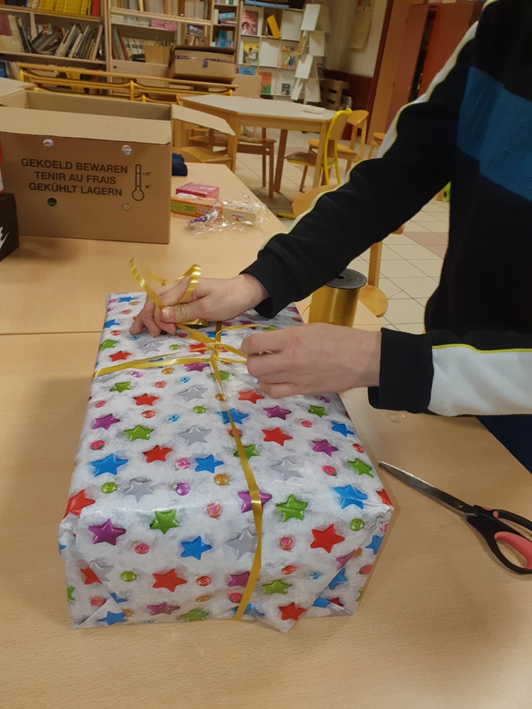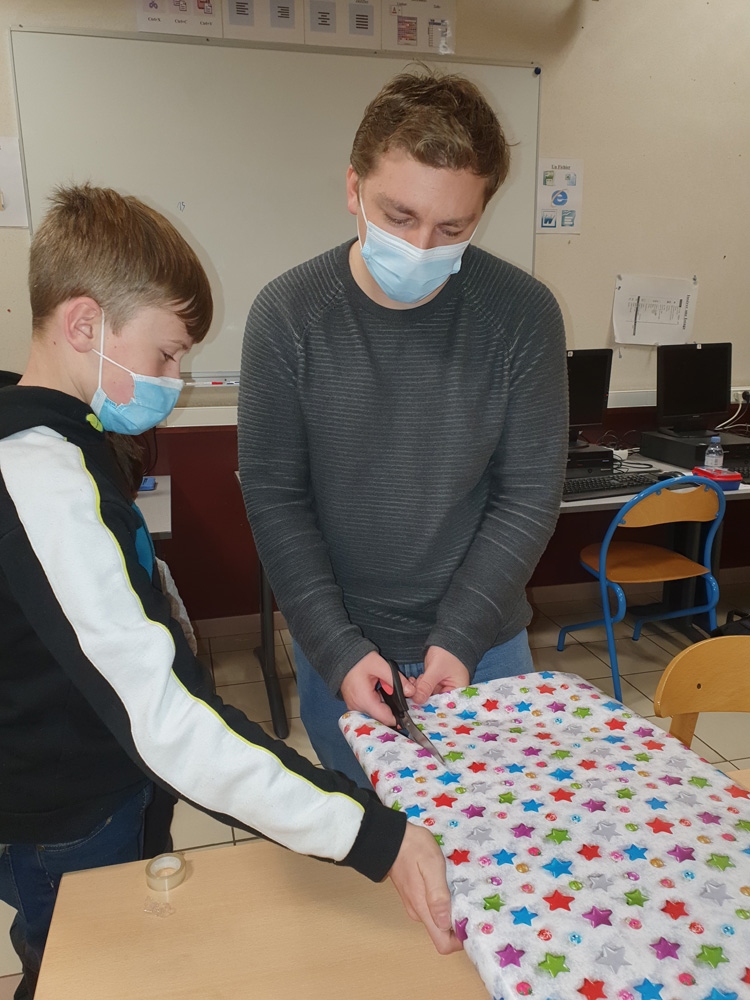 C'est avec entrain qu'ils se sont mis à l'ouvrage pour réaliser bon nombre de décorations et d'objets festifs sur le thème de Noël, de peintures et collages sur les vitres, et même collaboré à l'action du " calendrier inversé ". Organisé par le CCAS de la ville pour l’association « la Bulle Inattendue », cette action a permis de souligner la valeur du partage, du plaisir d’offrir aux plus démunis auxquels les familles ont grandement participé (un grand merci à elles pour leur coopération !). Les enfants ont été très actifs dans cette démarche en faisant les paquets et en les emballant avec soins afin de donner le sourire à leurs futurs acquéreurs.