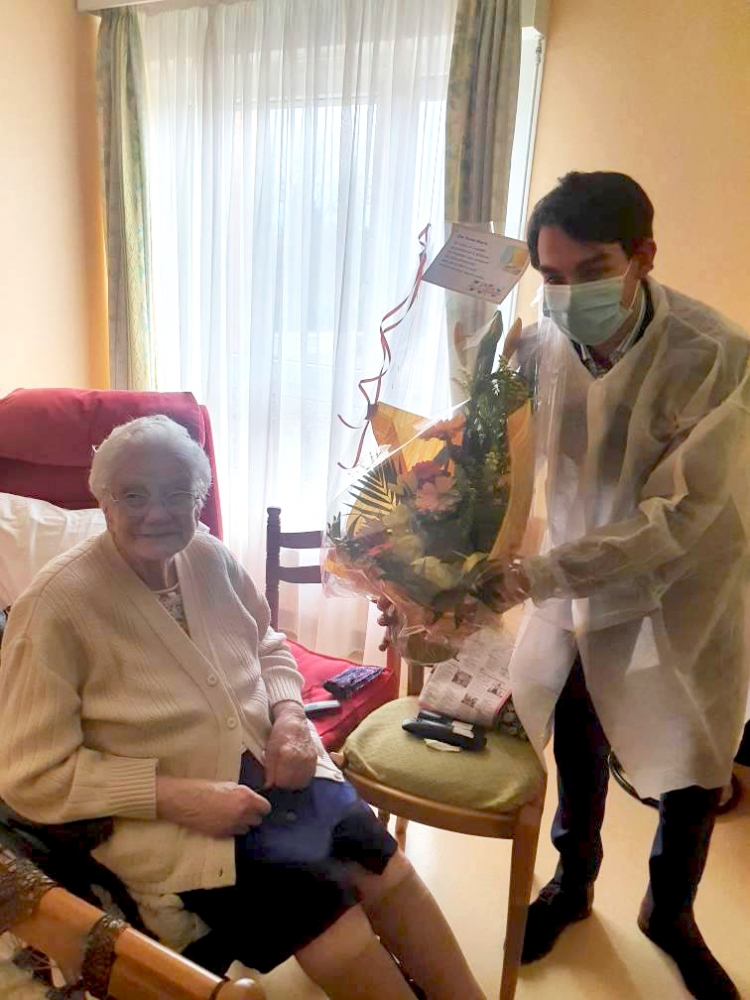 Même si la situation sanitaire n’a pas permis à la Municipalité de se rendre à l’EHPAD « Les Magnolias » pour célébrer les 107 ans de Mme Blanche Masson, Monsieur le Maire, Jean-Noël VERFAILLIE a souhaité lui transmettre ses meilleurs vœux et lui faire livrer ce joli bouquet de fleurs.