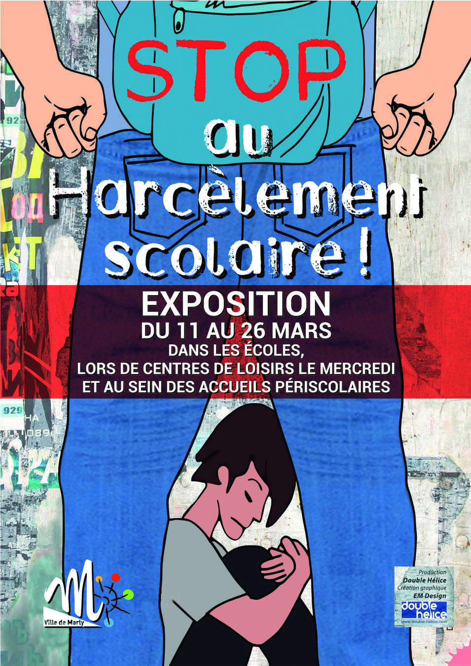 Destinée aux enfants et adolescents, cette exposition est composée de dix panneaux informatifs abondamment illustrés. Visant à faire prendre conscience des souffrances causées par le harcèlement scolaire, elle donne des clés pour réagir lorsqu’on en est victime. L’exposition est accompagnée aussi par 4 étudiants de l’IRTS (Institut Régional du Travail Social).