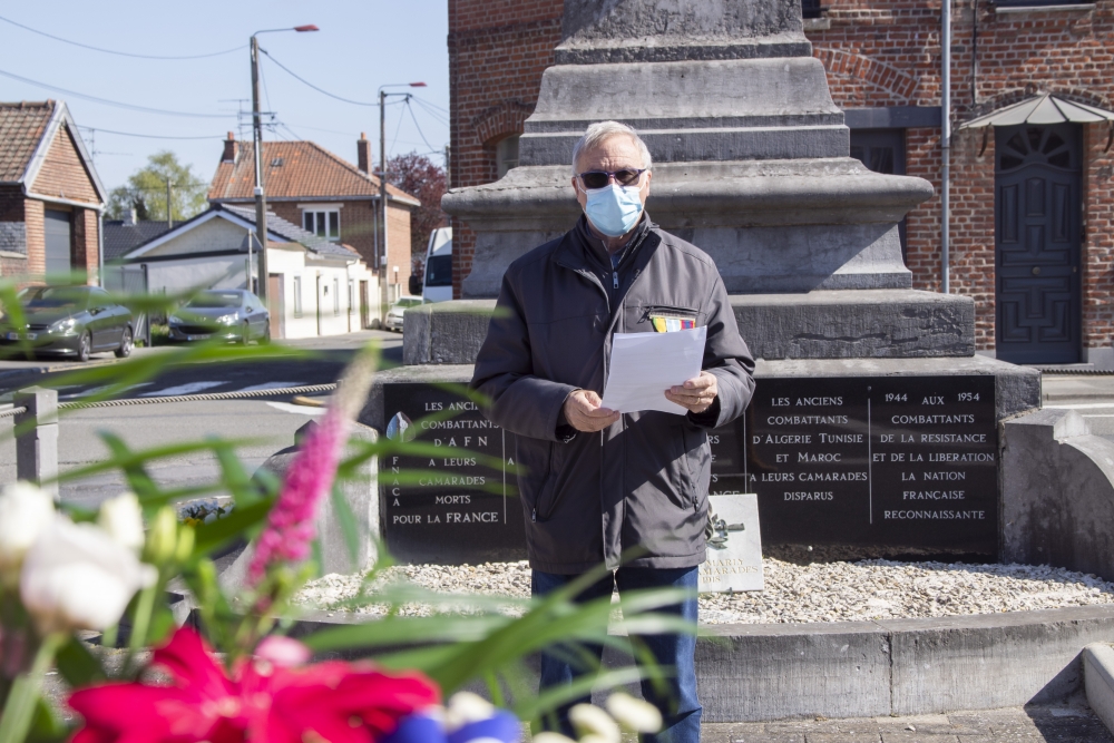 Joël Boute, devant le Monument aux Morts, a lu le message commun des associations de déportés : un message en souvenir à tous les déportés, victimes des génocides ou de la répression « Nous rendons aujourd’hui un hommage solennel, et nous saluons respectueusement leur mémoire. »
