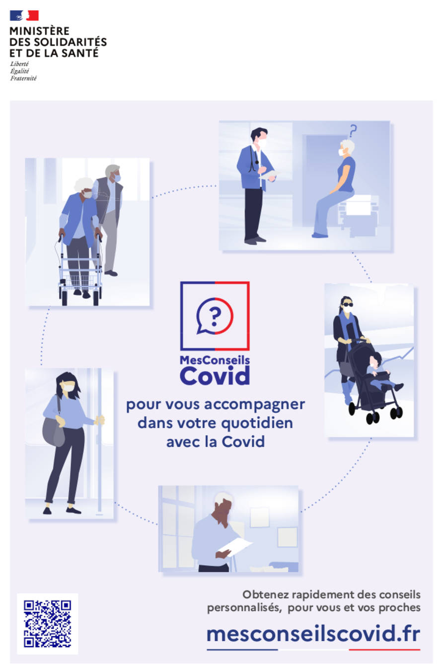 Le ministère des Solidarités et de la Santé a conçu le site www.mesconseilscovid.sante.gouv.fr dans le cadre de sa stratégie “Tester, Alerter, Protéger” de lutte contre l’épidémie de Covid-19.