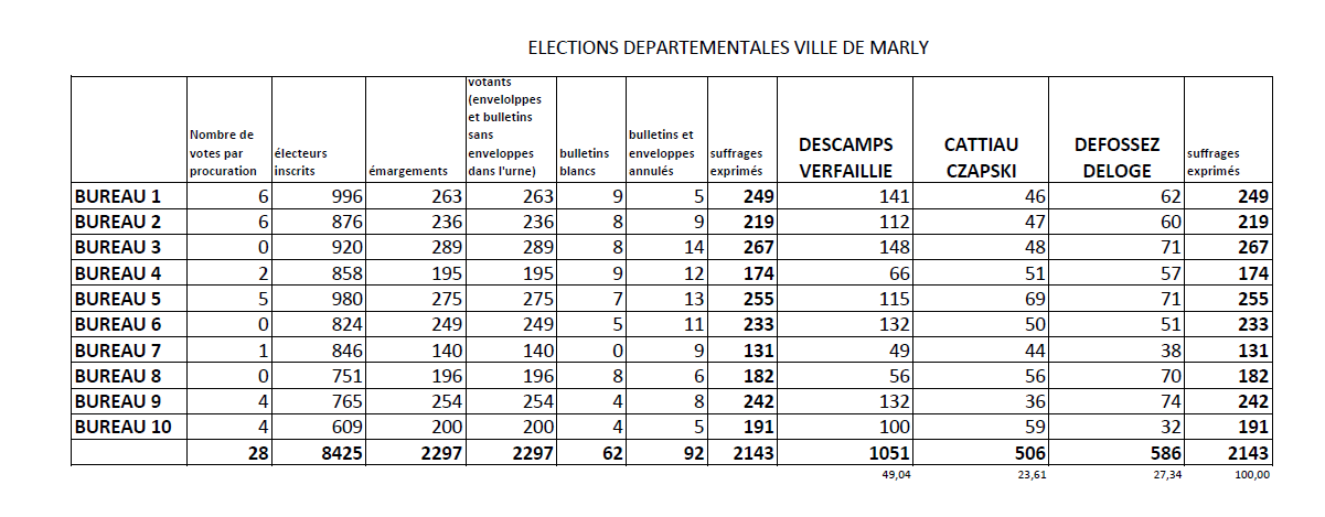 [ELECTIONS] Départementales : Résultats du premier tour, à Marly
