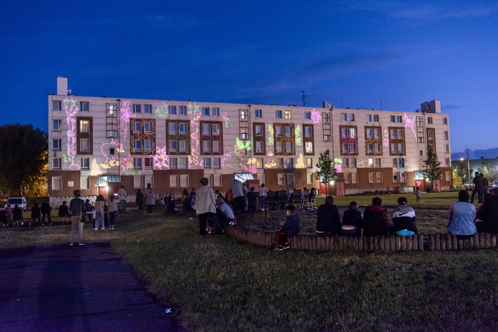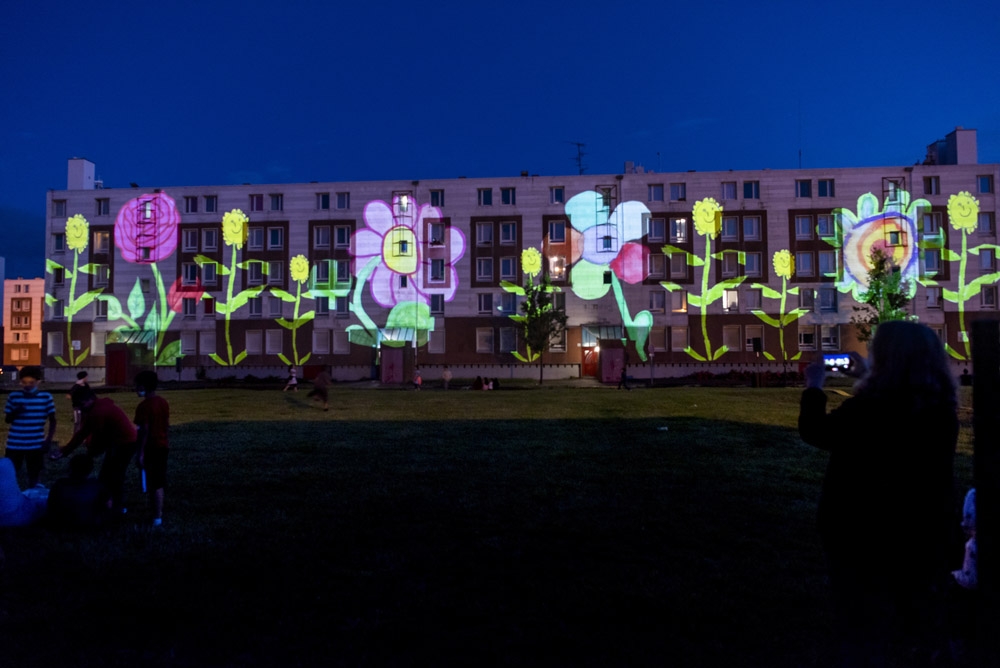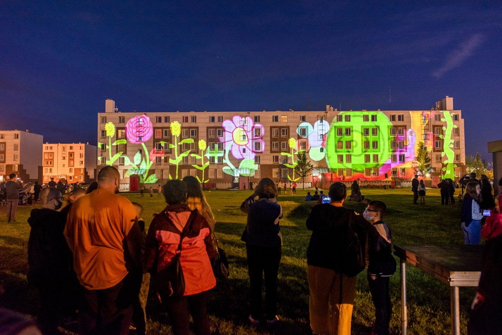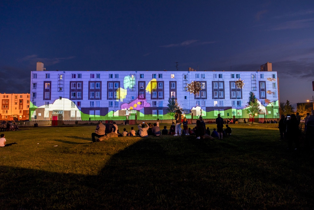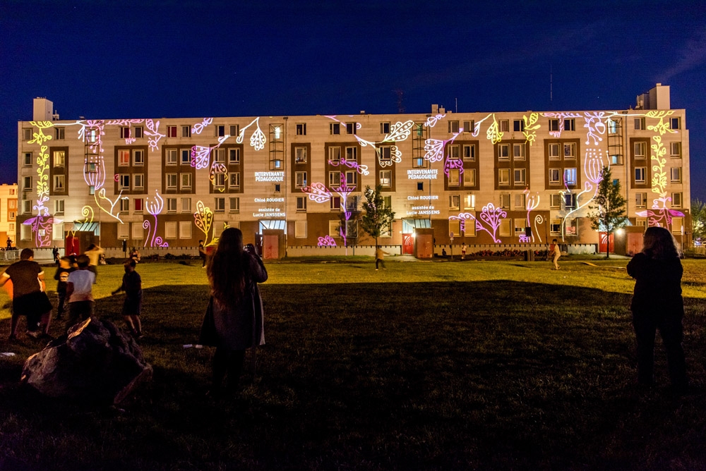 A l’occasion du lancement des travaux de rénovation du quartier, quatre créations, confiées à des artistes professionnels du vidéo mapping, ont été réalisées lors de différents ateliers participatifs menés avec des habitants de Valenciennes Métropole parmi lesquels le Centre social et culturel de la Briquette.