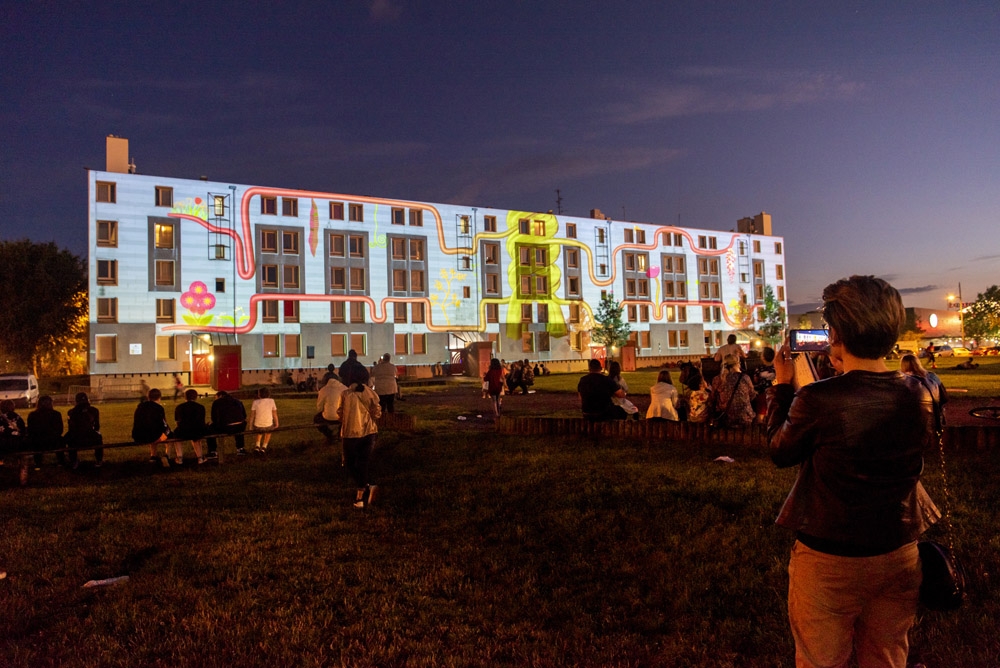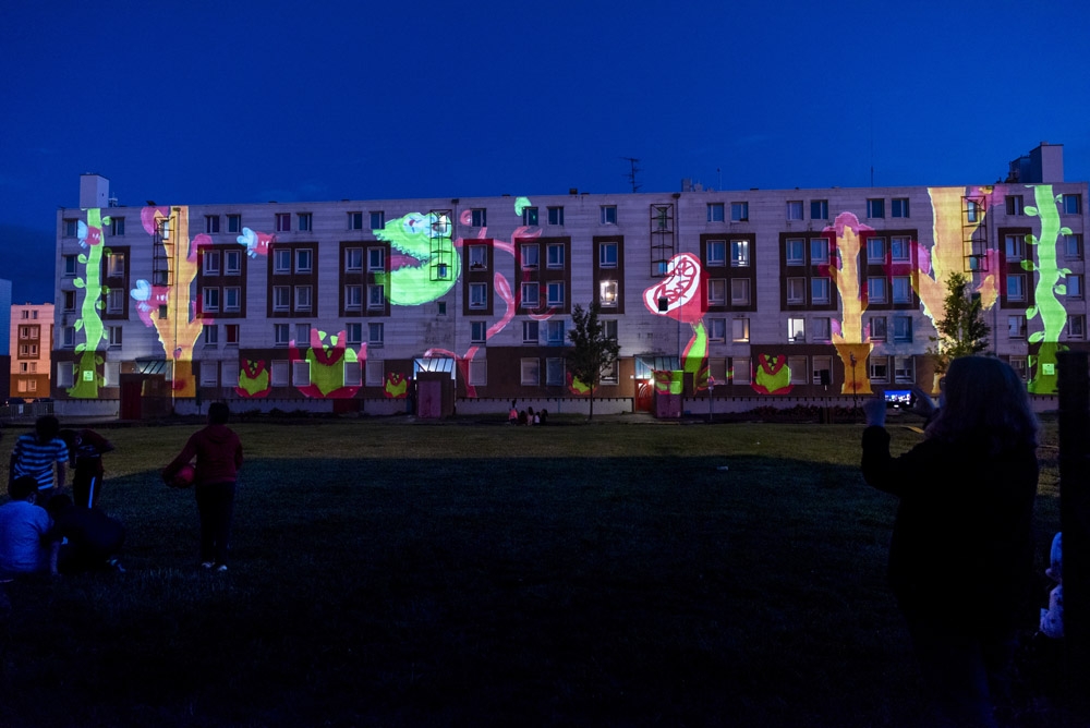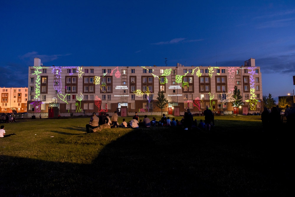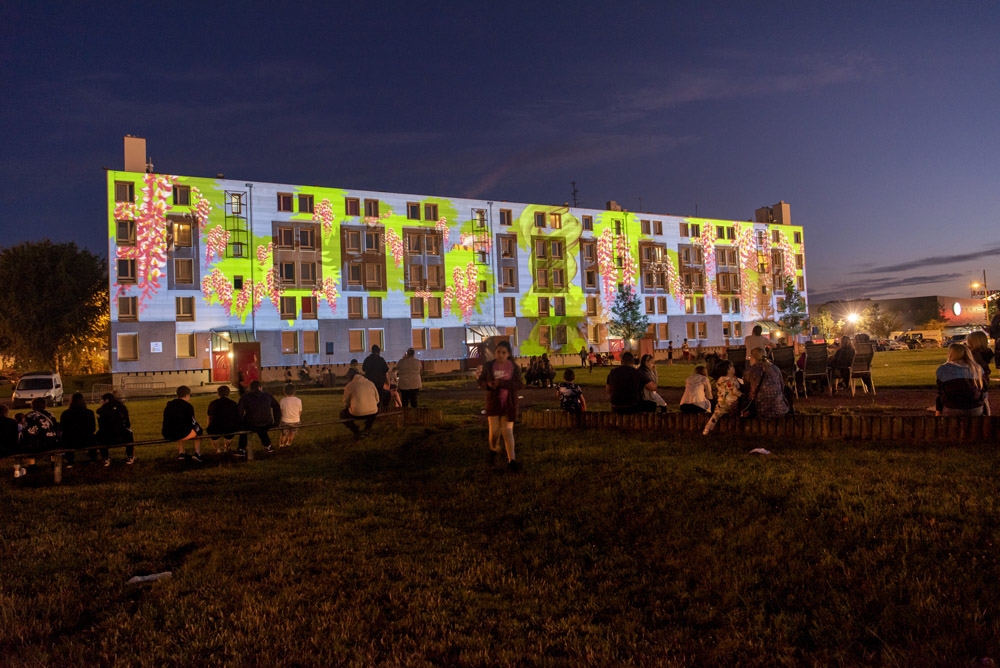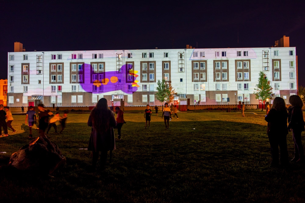 A l’occasion du lancement des travaux de rénovation du quartier, quatre créations, confiées à des artistes professionnels du vidéo mapping, ont été réalisées lors de différents ateliers participatifs menés avec des habitants de Valenciennes Métropole parmi lesquels le Centre social et culturel de la Briquette.