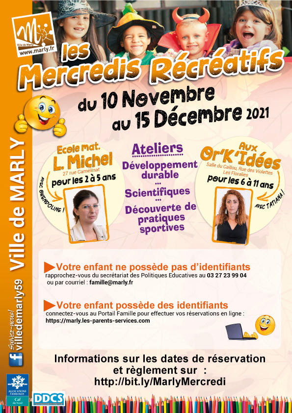 La prochaine période des Mercredis Récréatifs approche. Elle se déroulera du mercredi 10 novembre au mercredi 15 décembre 2021.