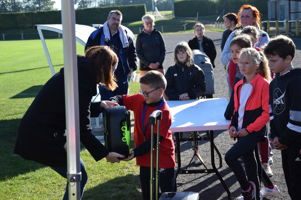 En 30 minutes, les coureurs devaient effectuer la plus grande distance possible et à chaque tour du parcours Trail de 700 m, ils déposaient dans sa bannette un « bouchon-relais », marque emblématique de la manifestation. A la fin de l’épreuve, les bouchons ont été comptabilisés ce qui a permis de départager les familles participantes, en faisant bien entendu une moyenne entre les bouchons et les participants qui sont tous repartis avec un lot.