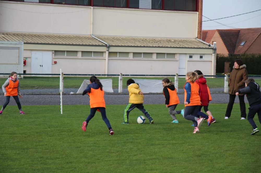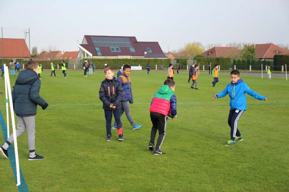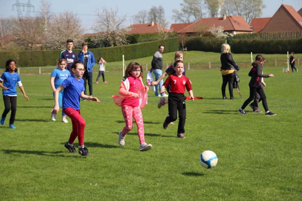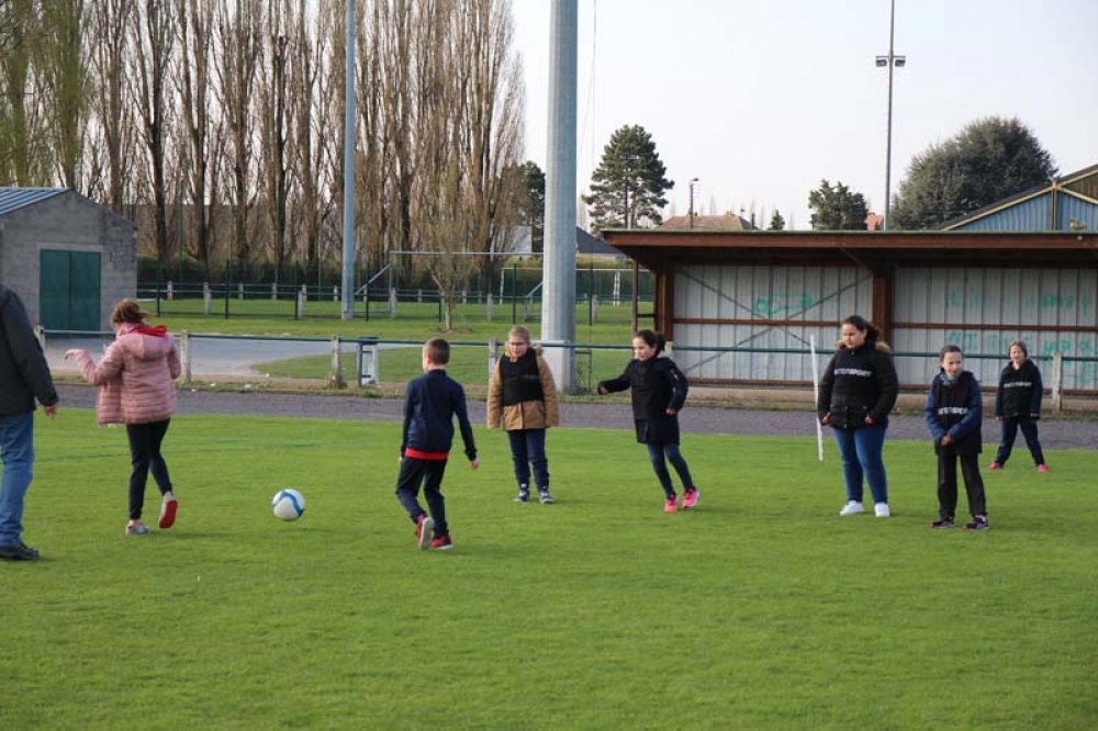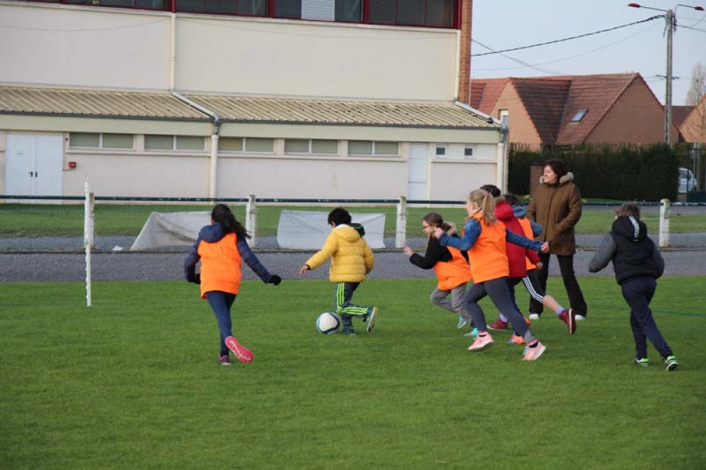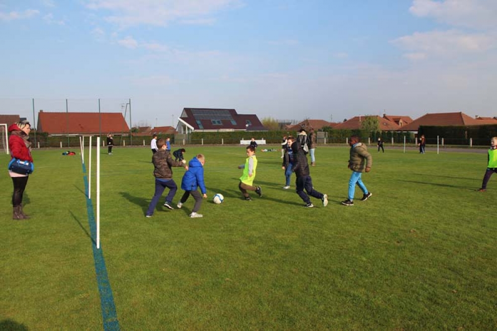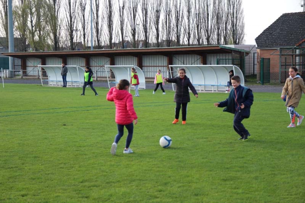 Les 32 classes, allant du CP au CM2, ont découvert lundi et mardi les joies du football ! Pas question de gagner ou de perdre, le but est de s'amuser ! Filles contre filles, garçons contre garçons, les 5 écoles étaient réunies au stade Denayer et encadrées par la section sportive du Collège Alphonse Terroir qui donna un peu de discipline et de lumière sur les règles du football.