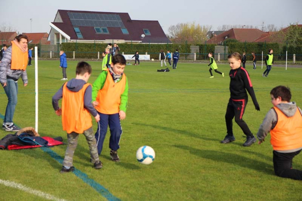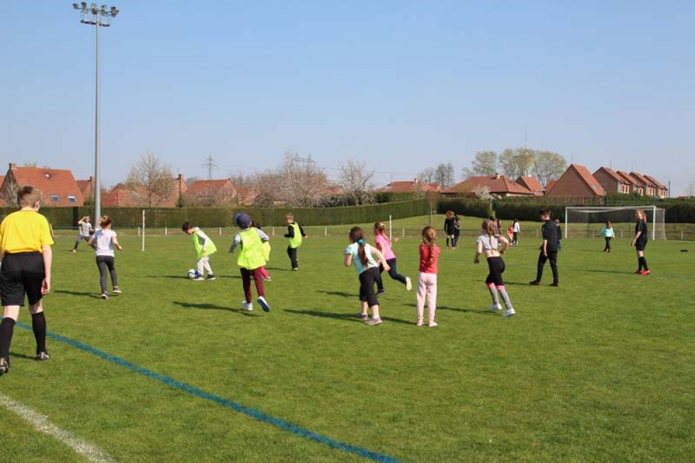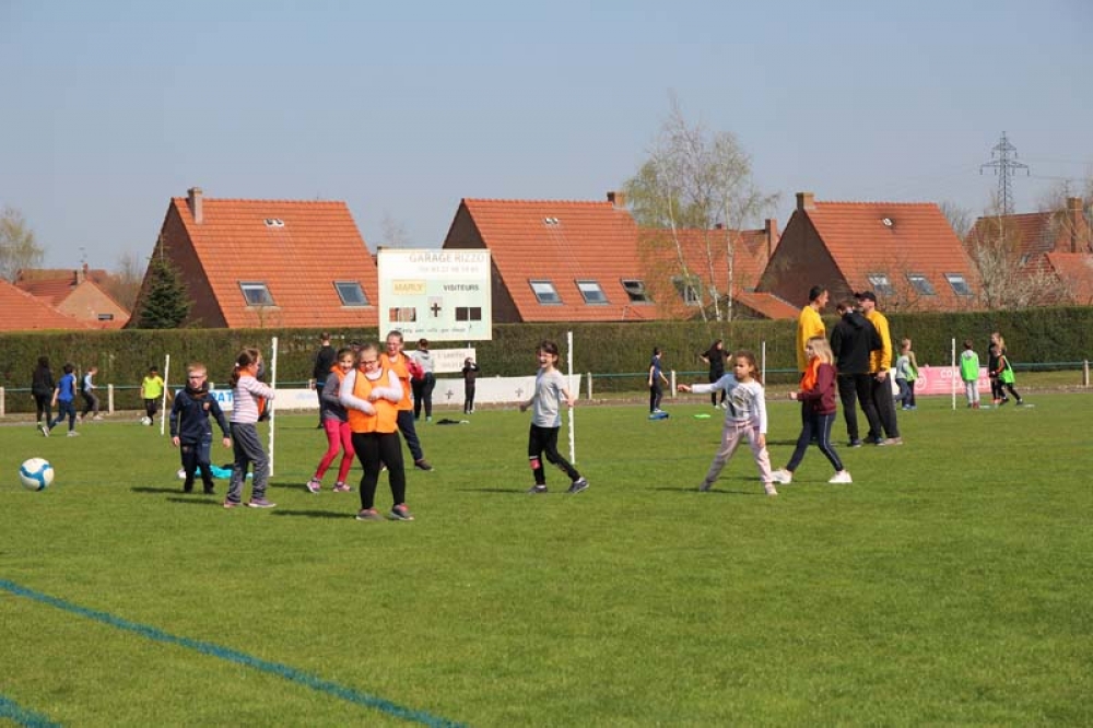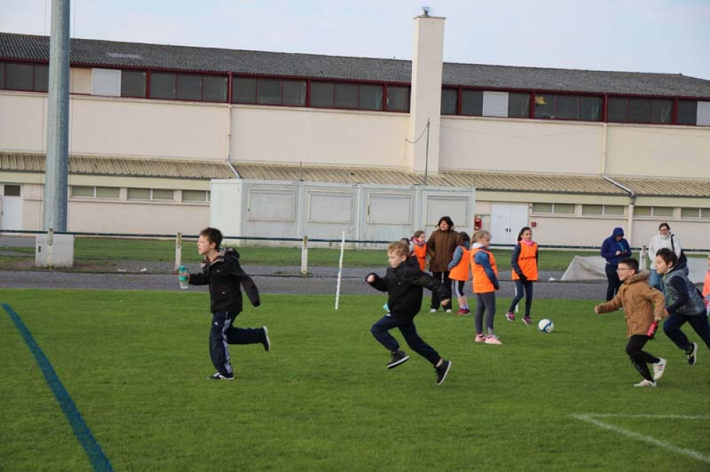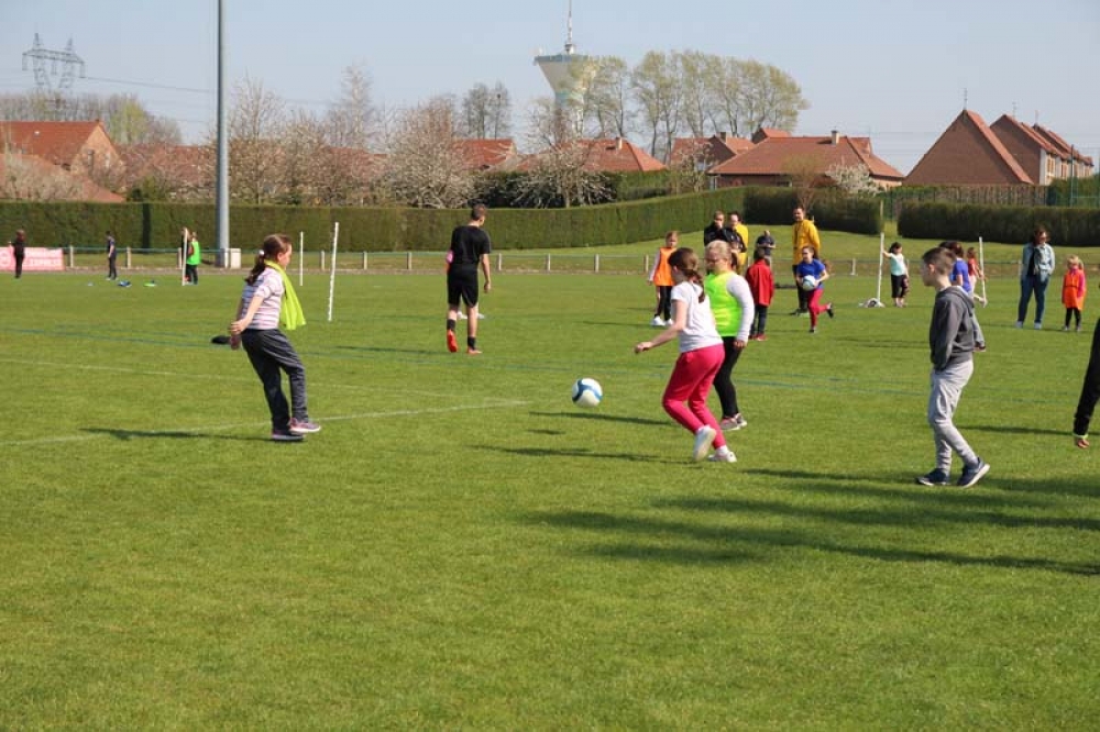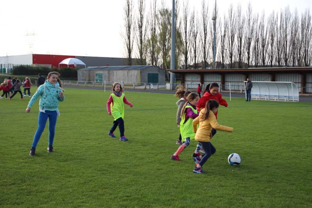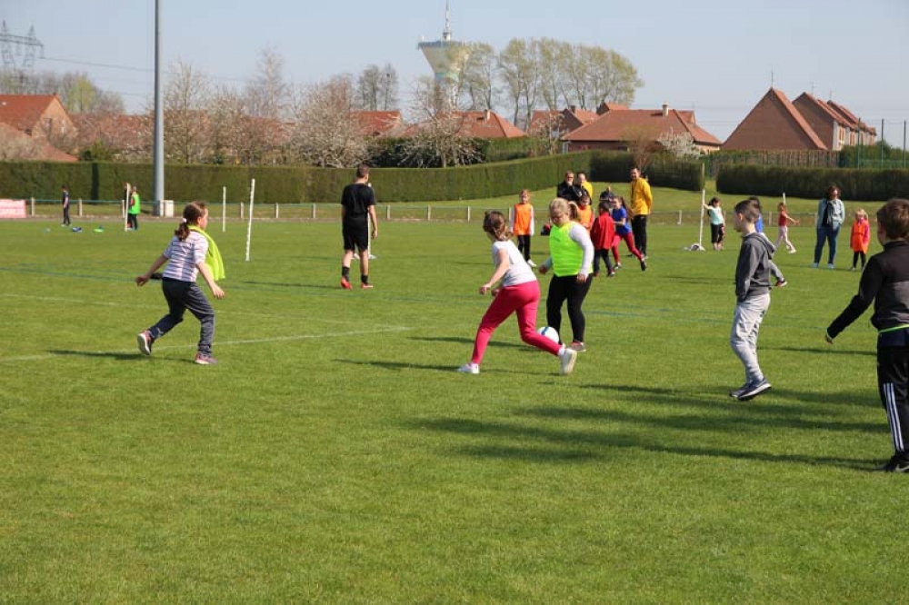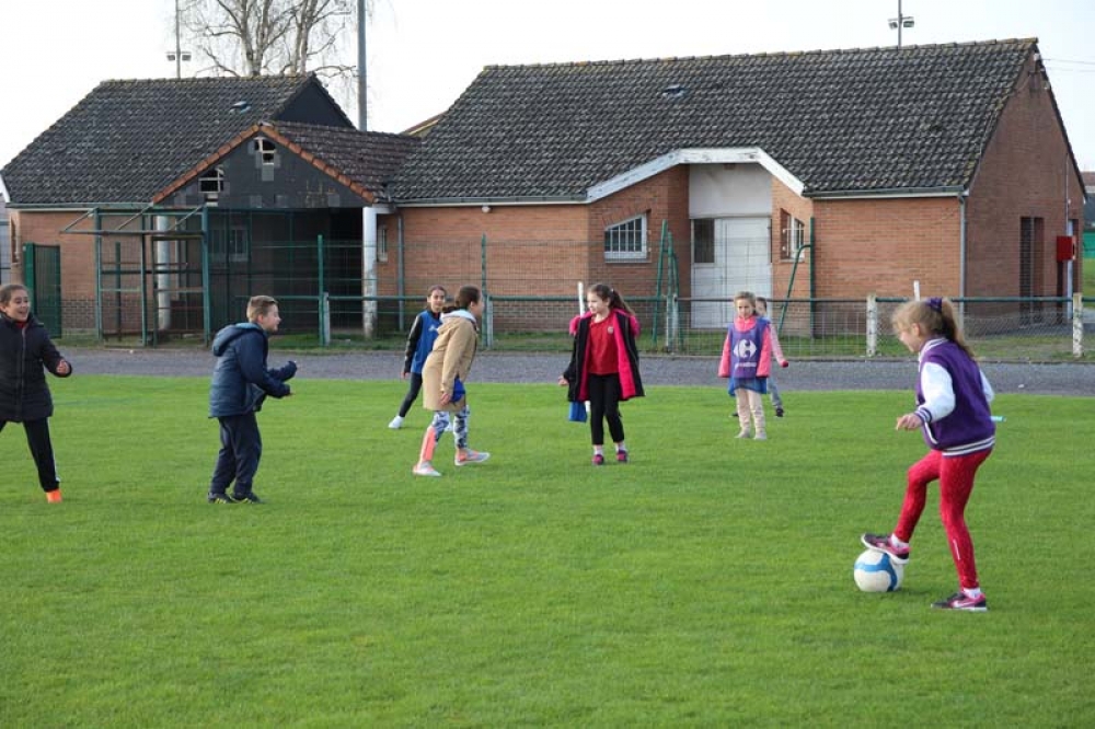 Les 32 classes, allant du CP au CM2, ont découvert lundi et mardi les joies du football ! Pas question de gagner ou de perdre, le but est de s'amuser ! Filles contre filles, garçons contre garçons, les 5 écoles étaient réunies au stade Denayer et encadrées par la section sportive du Collège Alphonse Terroir qui donna un peu de discipline et de lumière sur les règles du football.