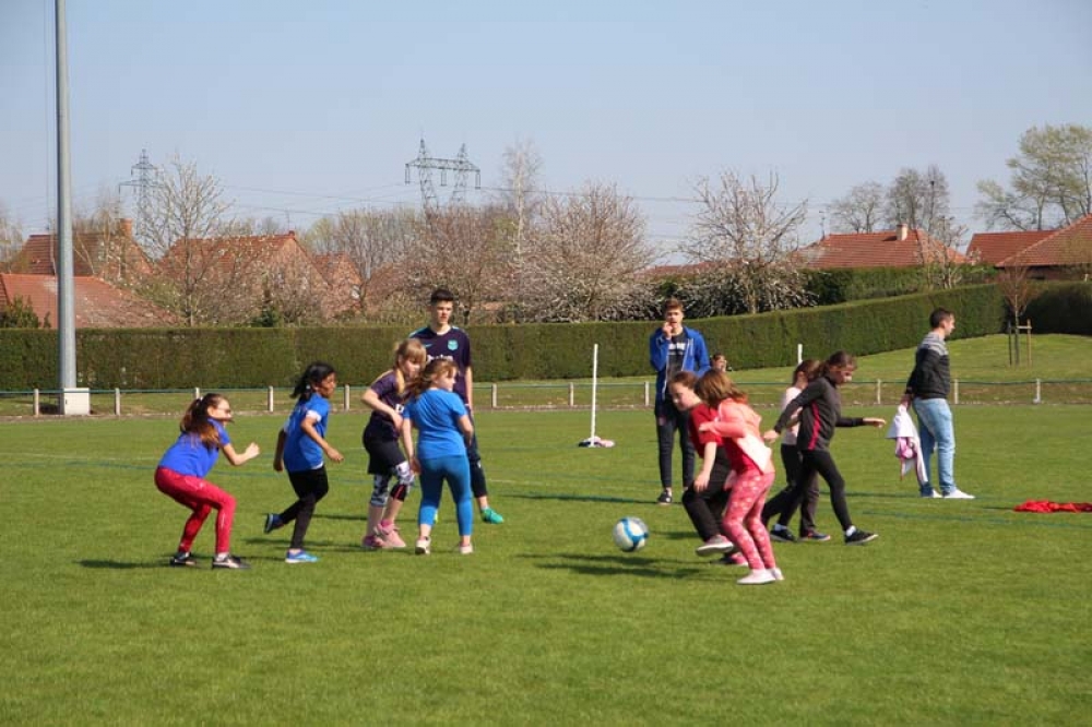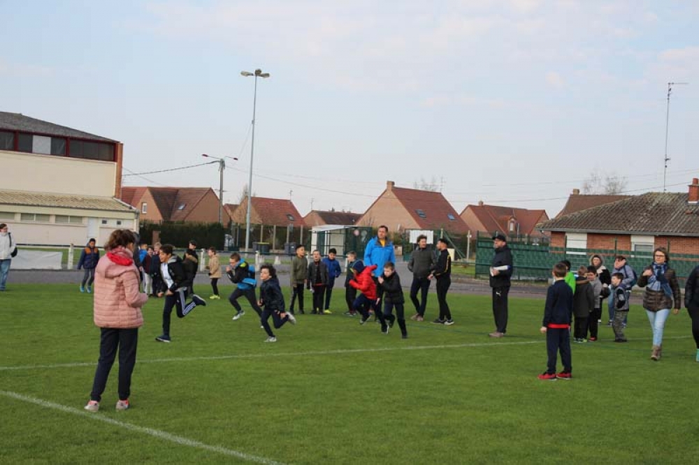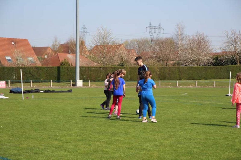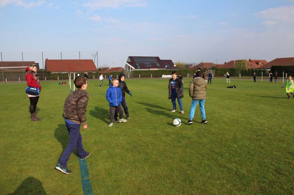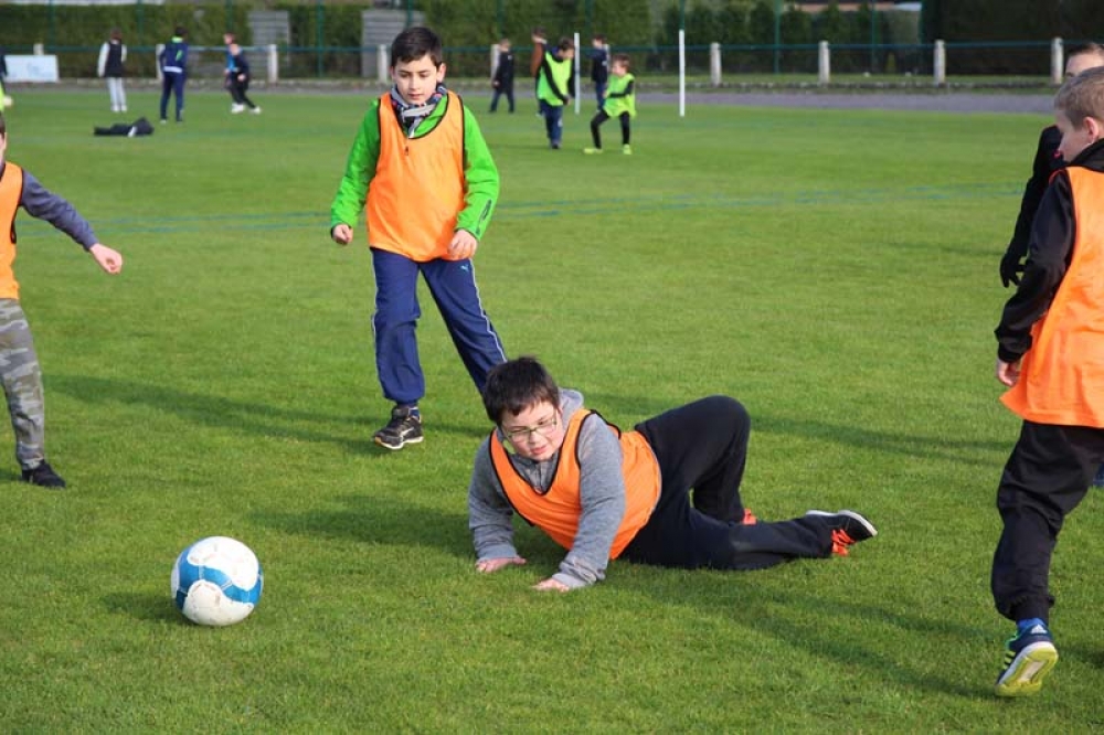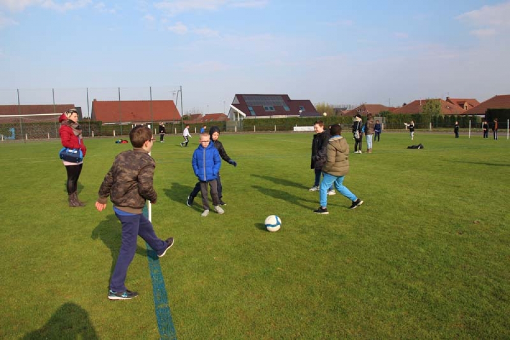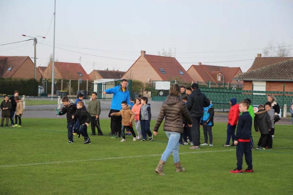 Les 32 classes, allant du CP au CM2, ont découvert lundi et mardi les joies du football ! Pas question de gagner ou de perdre, le but est de s'amuser ! Filles contre filles, garçons contre garçons, les 5 écoles étaient réunies au stade Denayer et encadrées par la section sportive du Collège Alphonse Terroir qui donna un peu de discipline et de lumière sur les règles du football.
