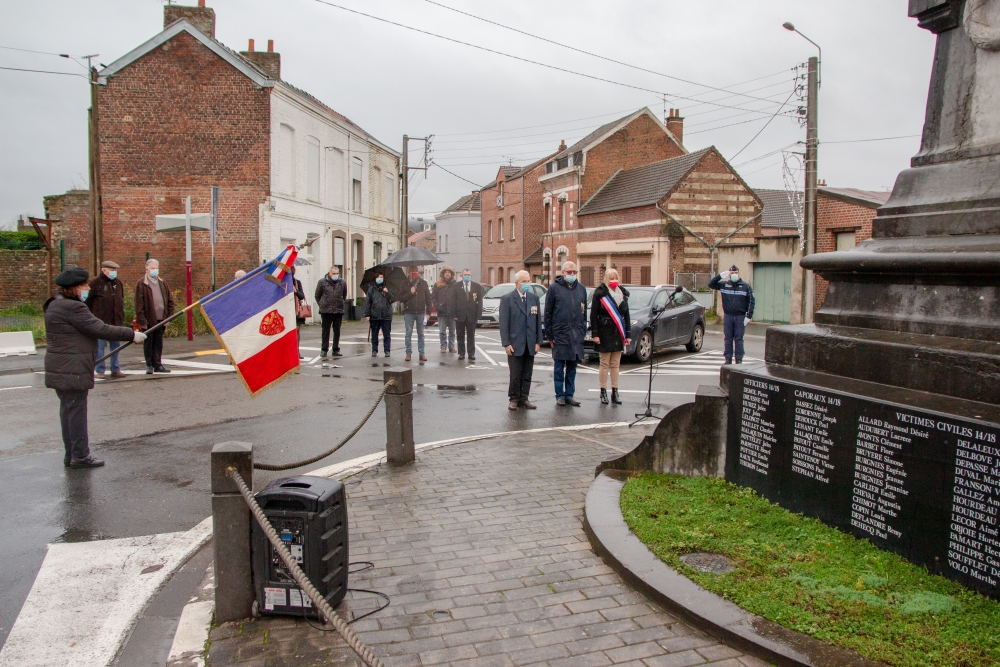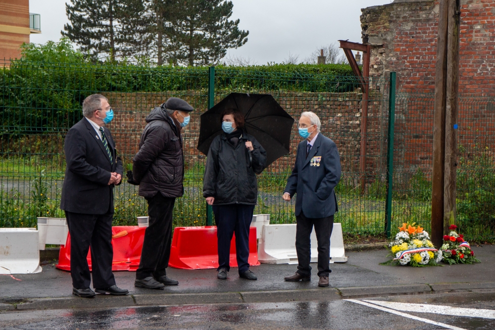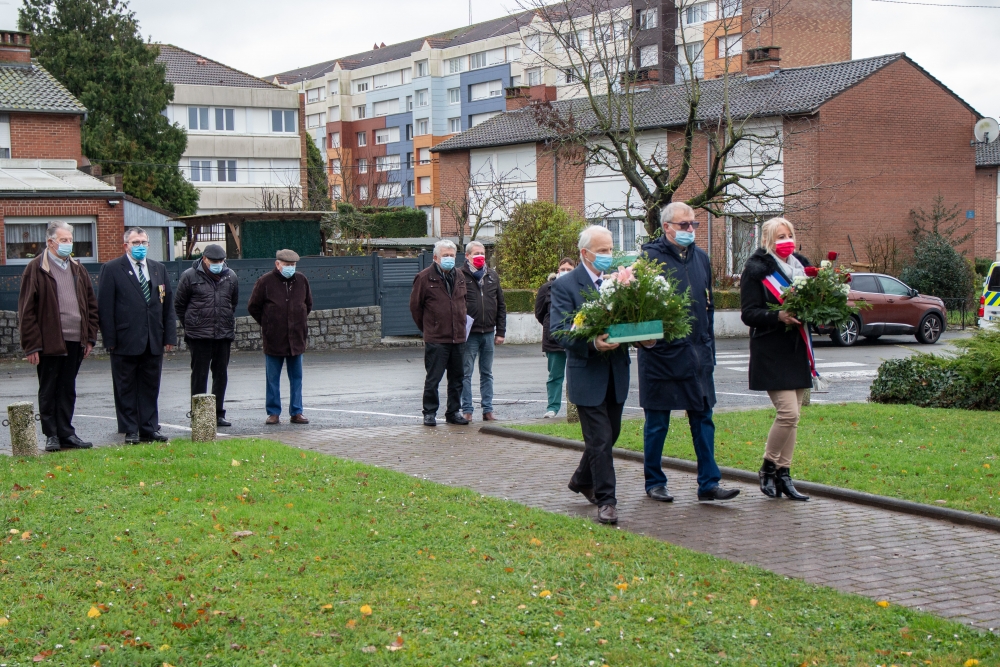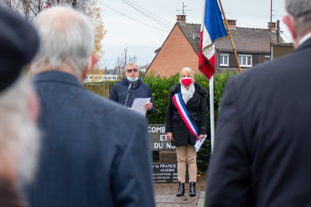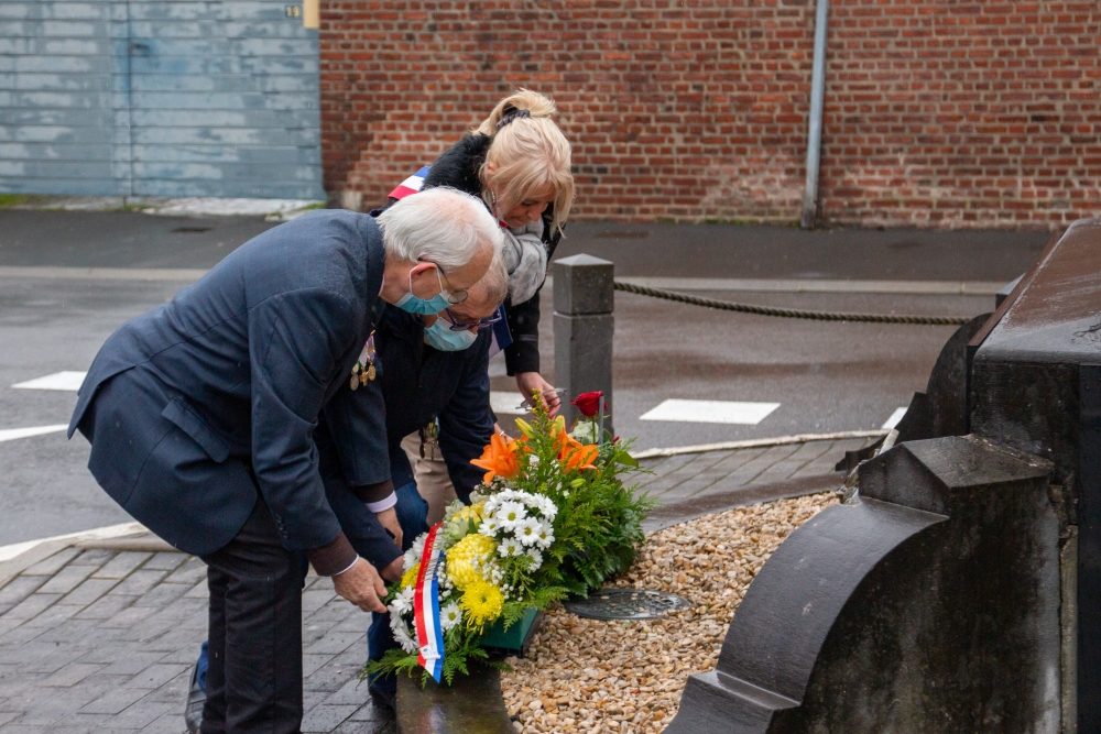 Après la lecture du message de la Fédération des Anciens Combattants par Joël Boute, Conseiller délégué au protocole et aux affaires militaires et patriotiques, les autorités ont déposé des gerbes au pied de la stèle des A.F.N. et T.O.E., rue Jules Vallès.