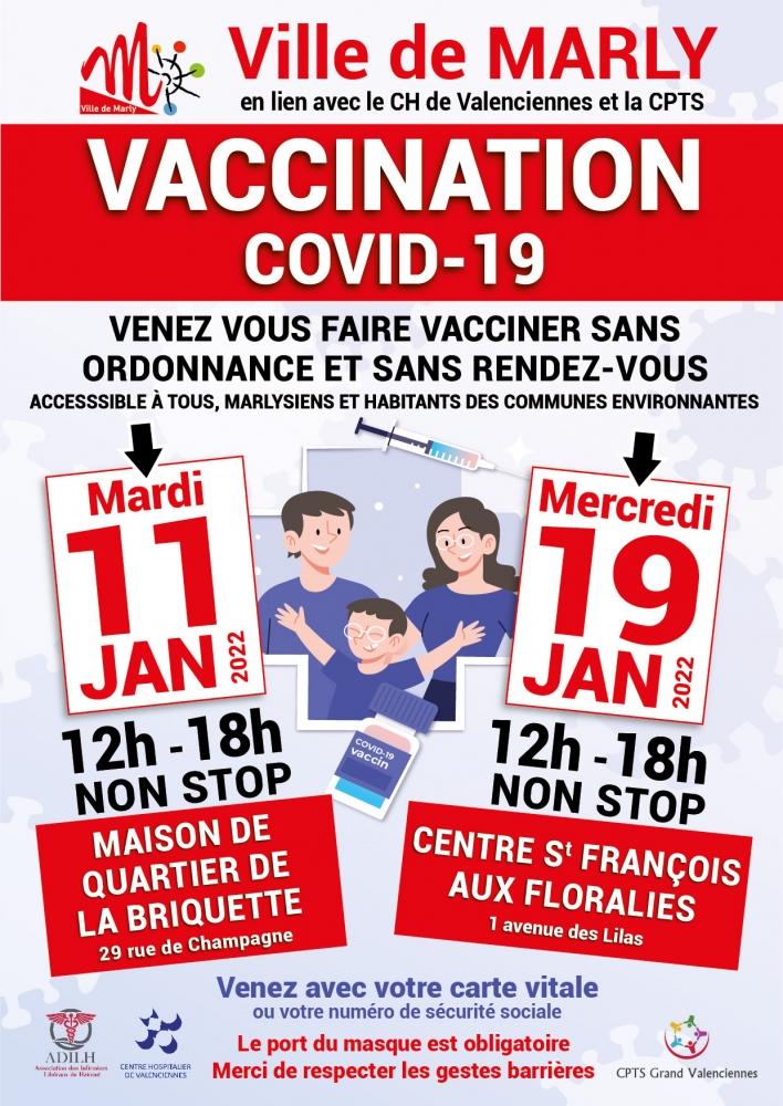 Organisée par la ville de Marly, en lien avec le centre hospitalier de Valenciennes et la CPTS (communauté professionnelle territoriale de santé) et l'ADILH (Association des Infirmiers Libéraux du Hainaut), cette journée était ouverte à tous, marlysiens ou extérieurs, pour la primo vaccination, la seconde ou la troisième dose.