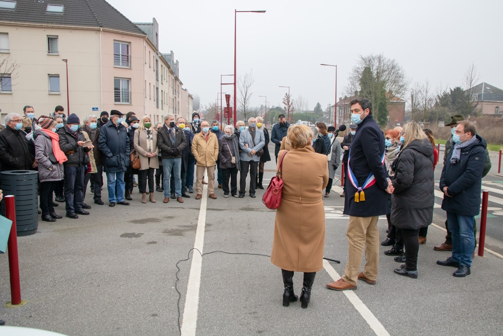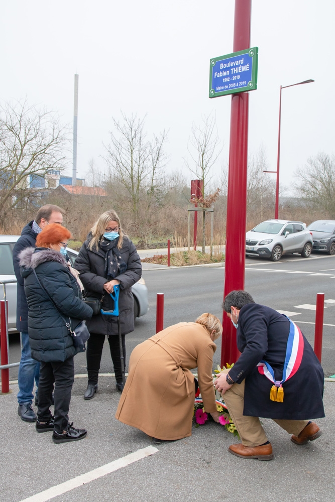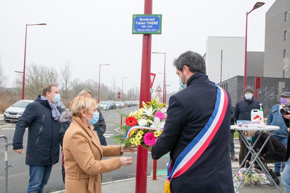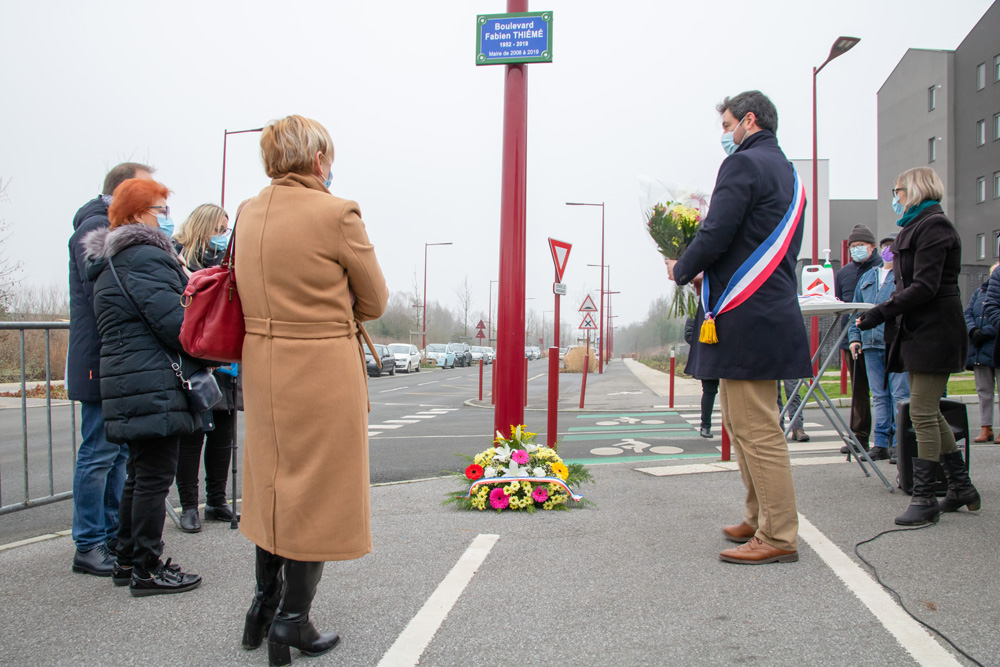 Mercredi 12 janvier 2022, Jean-Noël Verfaillie, maire de Marly, accompagné de beaucoup d'élus et de Laurent Degallaix, maire de Valenciennes, sont venus honorer la mémoire de Fabien Thiémé, maire de Marly de 2008 à 2019 et initiateur du projet de cette "voie verte". Ils ont dévoilé la plaque du boulevard devant une assemblée émue, en présence de la famille et de ses amis venus lui rendre hommage.