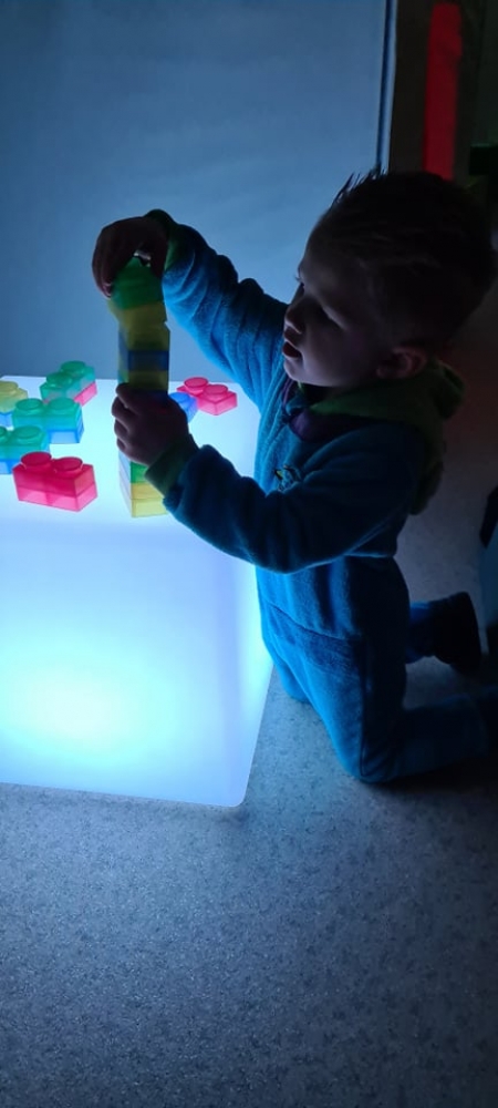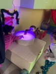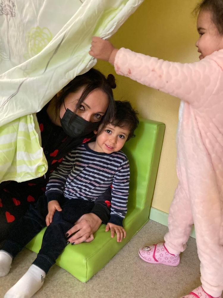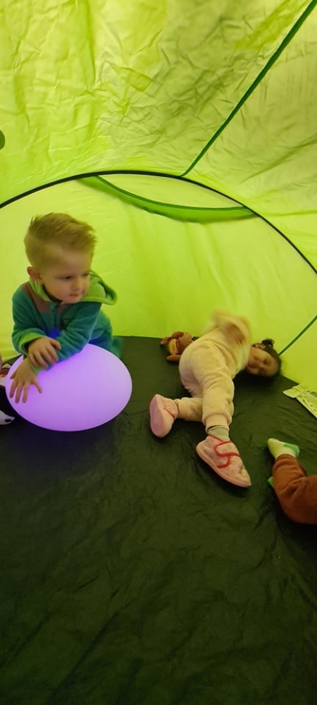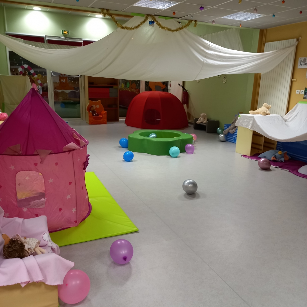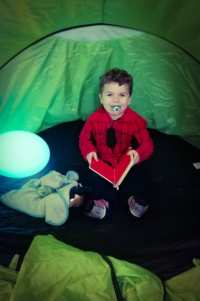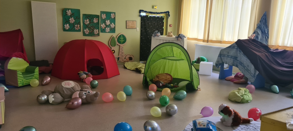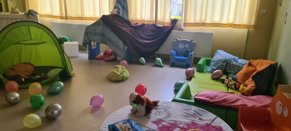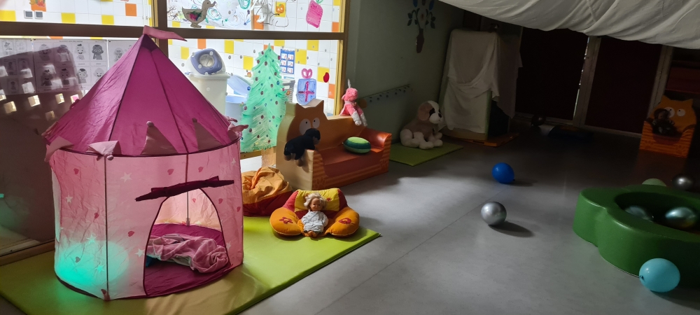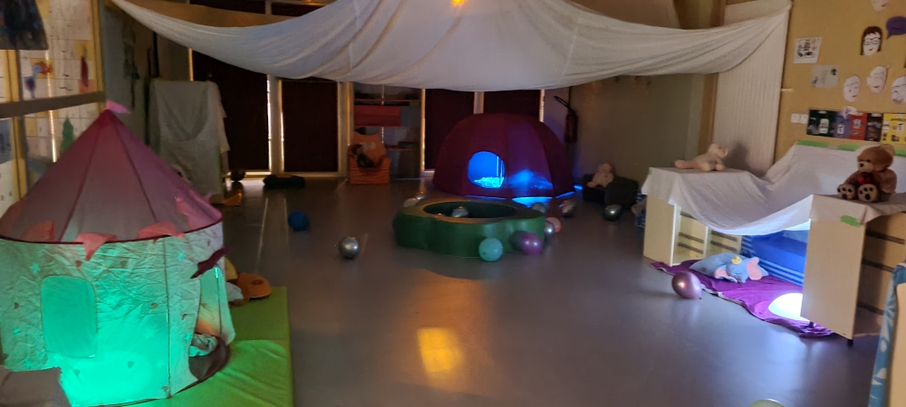 A peine un pied dans la structure, les yeux émerveillés et le sourire jusqu’ aux oreilles, les enfants ont pu découvrir un nouveau décor, des cabanes, des tentes installées un peu partout. Des doudous, poufs, et coussins moelleux les attendaient chaleureusement, tout cela dans une ambiance tamisée, à l’approche « snoezelen ».