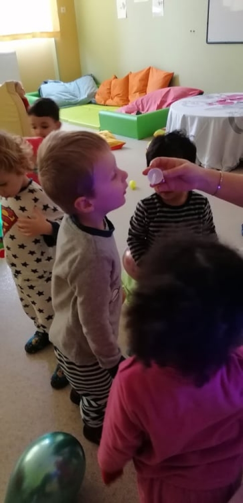 Pour les + grands : Cache cache, jeux musicaux au rythme des chansons de disney, des bulles, jeux de lumière pour une pyjama party digne de ce nom. Des comptines et des livres sur le thème des doudous, du sommeil, les rituels d endormissement.