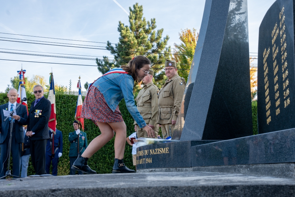 Plusieurs dépôts de gerbes de fleurs ont été effectués par les différentes autorités, dont l'adjointe aux relations publiques et à la vie patriotique, Isabelle Dupont, le Sous-préfet et le Maire de Valenciennes, messieurs Michel Chpilevsky et Laurent Degallaix. Le cortège s'est ensuite rassemblé autour de la stèle Gilles Fabry, où Isabelle Dupont a tenu à honorer son nom et rappeler l'importance du devoir de mémoire. " Etre réunis à la stèle Gilles Fabry, c’est honorer la mémoire de tous ceux qui ont contribué à faire de notre pays un pays libre ! "