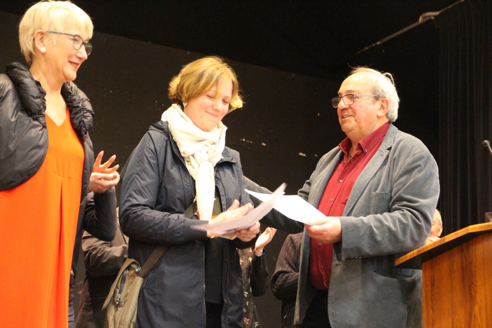 Absente ce jour là, c'est son fils Julien, Chef du Pôle des affaires culturelles de la Ville et sa belle-fille qui sont venus sur la scène chercher son diplôme.