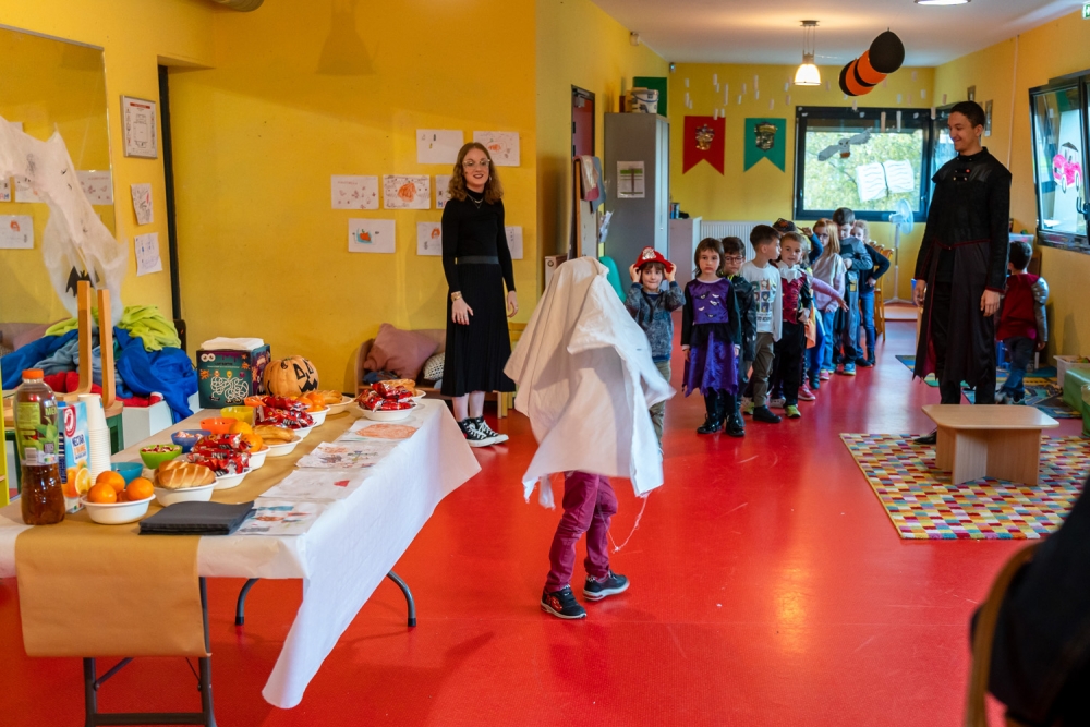 Socières, magiciens et enchanteurs en herbe ont investi la salle du Caillou et les salles de classe pour un goûter aux couleurs et saveurs de l'automne.