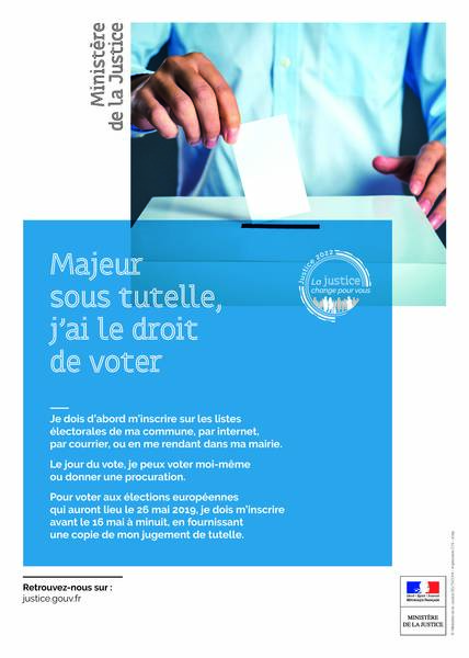 Pour voter aux élections européennes qui auront lieu le dimanche 26 mai prochain, vous devez vous inscrire en Mairie, au Service État Civil avant le 16 mai en délivrant une copie de votre jugement de tutelle.