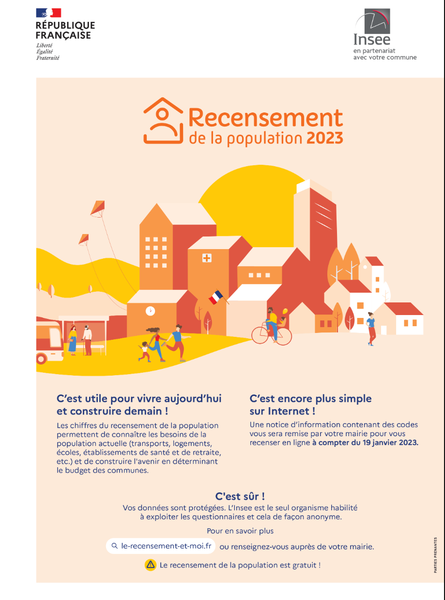 Un agent recenseur recruté par votre mairie se présentera chez vous, muni de sa carte officielle. Il vous remettra les questionnaires à remplir sur format papier ou par Internet, concernant votre logement et les personnes qui y résident. Le recensement permet de prendre des décisions adaptées aux besoins de la population. C’est pourquoi il est essentiel que chacun y participe ! Pour en savoir plus, vous pouvez vous adresser à votre agent recenseur, à votre mairie ou vous rendre sur le site : www.le-recensement-et-moi.fr