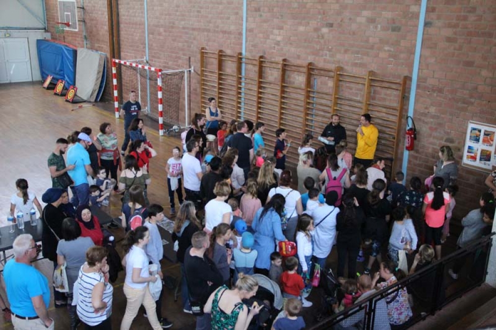 Au coeur de la salle Dumont, des ateliers badminton, basket, tir à l'arc et stand de petite restauration attendaient les premiers revenus du parcours, ainsi que les familles se préparant pour le deuxième évènement important de la journée : la chasse aux oeufs !