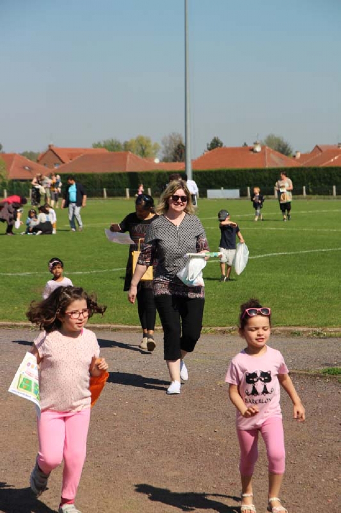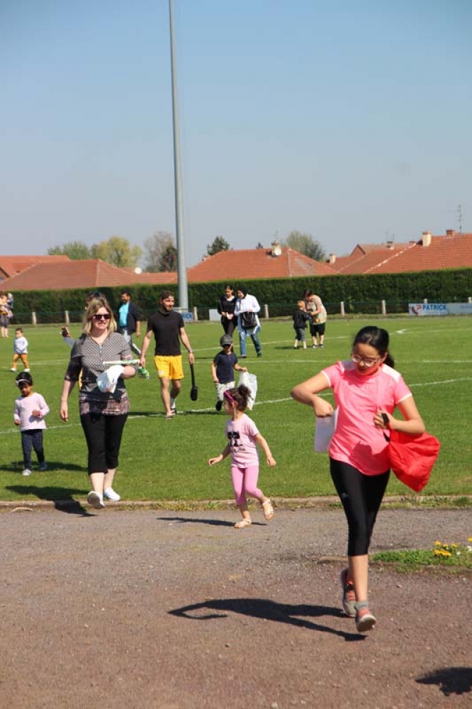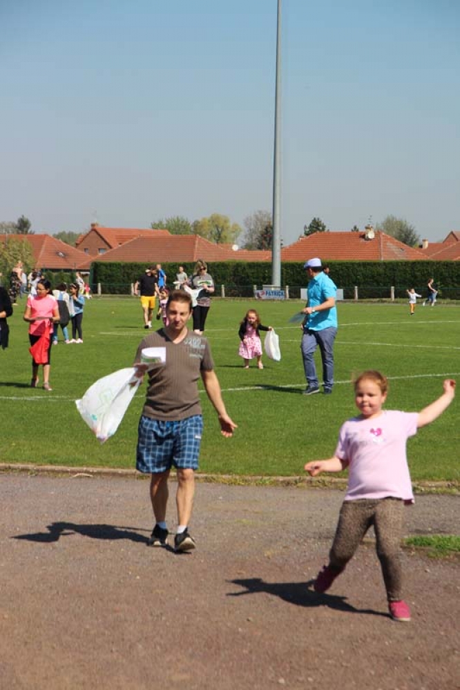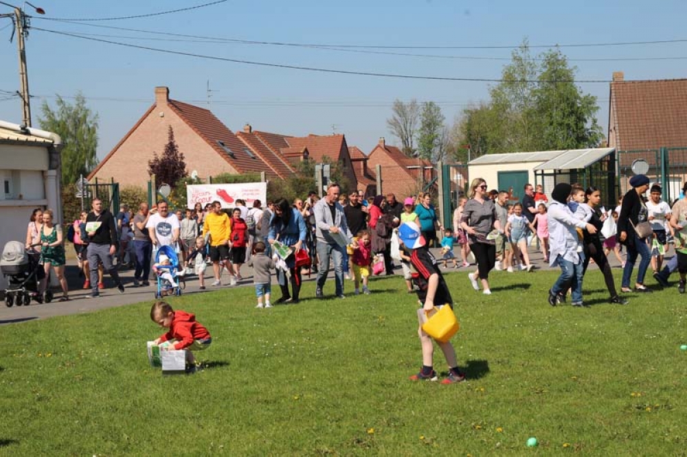 Munis de leur carte et du code couleur des oeufs à trouver, les enfants et leurs familles ont attendu le coup d'envoi de Monsieur le Maire, Fabien THIÉMÉ et des membres de son Conseil municipal pour se précipiter sur les 5 terrains du stade !