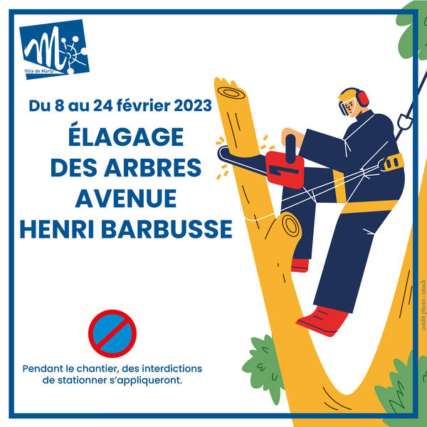 L'élagage des tilleuls aura lieu du 8 au 24 février 2023 avenue Henri Barbusse.