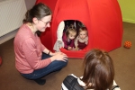 Accompagnées par leurs assistantes maternelles, les familles employeurs (mamans, papas, tantes …) ont été accueillies avec leurs enfants, et pour certains avec leur fratrie. Pour cette occasion, l’équipe a proposé à l’ensemble des personnes présentes un grand espace de motricité, avec des modules de grimpe, des cabanes avec divers supports lumineux...