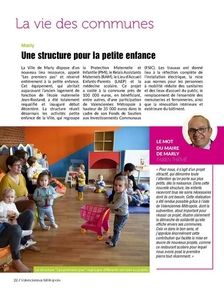 Dans son dernier numéro, le magazine de Valenciennes Métropole revient sur la structure Petite Enfance " Les Premiers Pas"