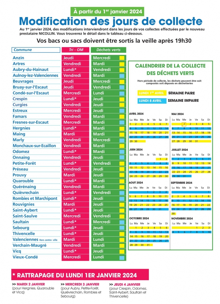Dans ce cadre, les calendriers de collecte seront modifiés.