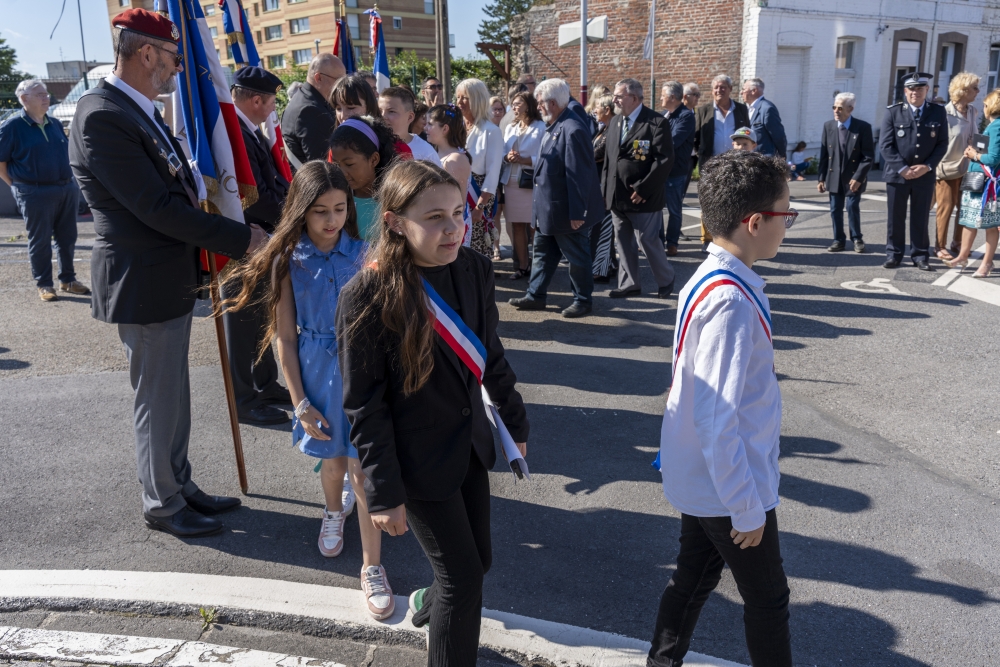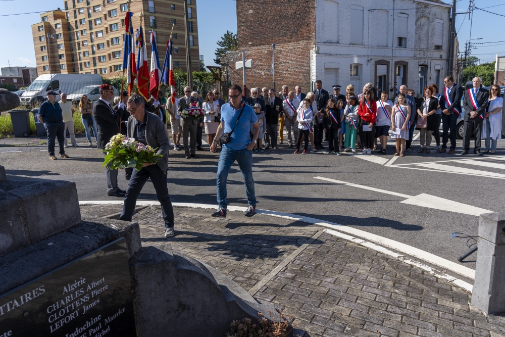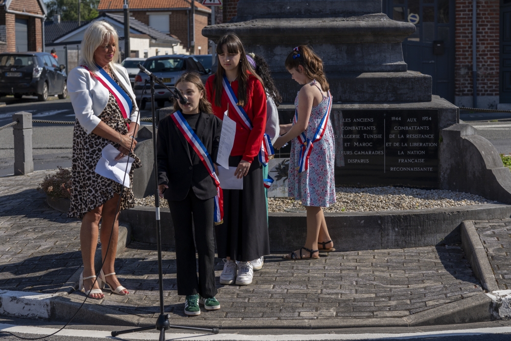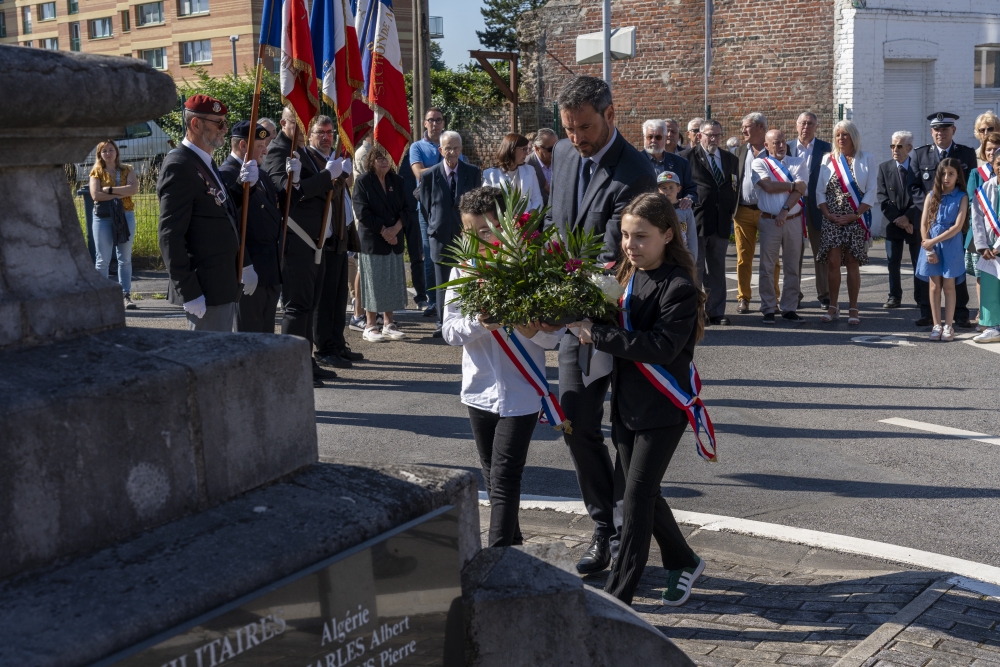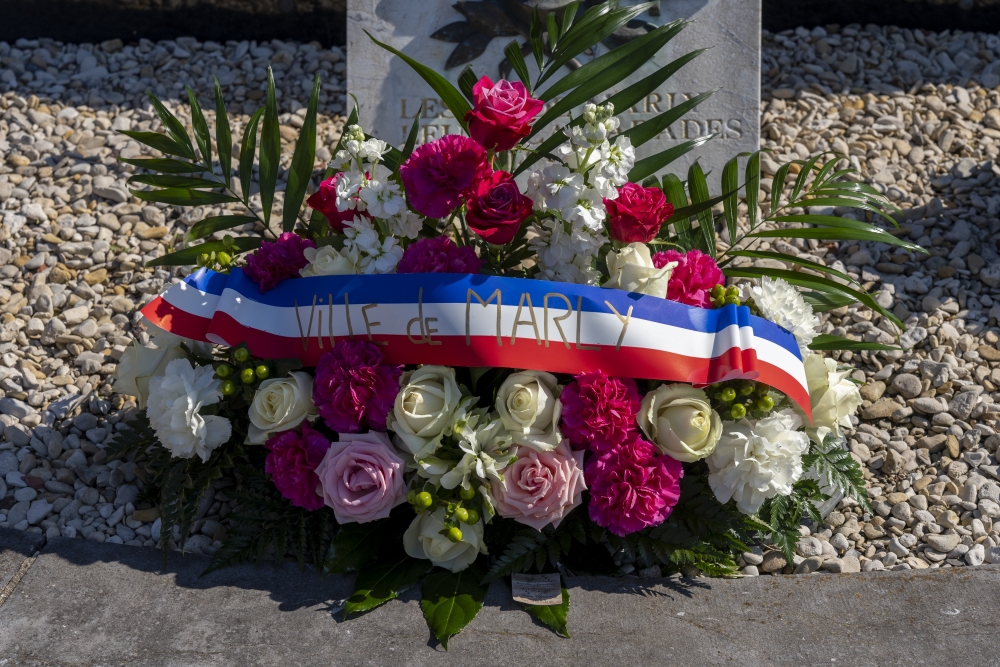 En ce jour de fête nationale, Jean-Noël Verfaillie, Maire de Marly, accompagné par le Commissaire Central, les membres du Conseil Municipal, les jeunes du Conseil Municipal des Enfants, les représentants des anciens combattants et des représentants d'associations, a commémoré le 14 juillet sur la place du sergent Blary. Des gerbes de fleurs ont été déposées au pied du monument aux morts et La Marseillaise a été chantée par Laurence Morel, élue à la Culture, et reprise en choeur par les membres de la chorale Marly Mélodies et le public présent.