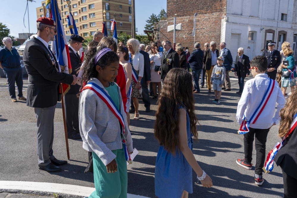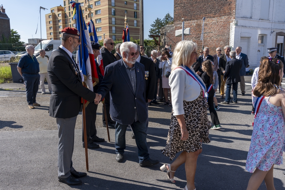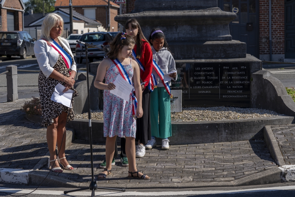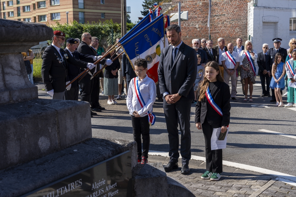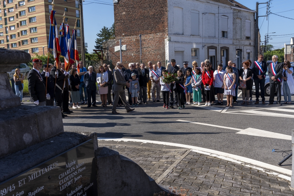 En ce jour de fête nationale, Jean-Noël Verfaillie, Maire de Marly, accompagné par le Commissaire Central, les membres du Conseil Municipal, les jeunes du Conseil Municipal des Enfants, les représentants des anciens combattants et des représentants d'associations, a commémoré le 14 juillet sur la place du sergent Blary. Des gerbes de fleurs ont été déposées au pied du monument aux morts et La Marseillaise a été chantée par Laurence Morel, élue à la Culture, et reprise en choeur par les membres de la chorale Marly Mélodies et le public présent.