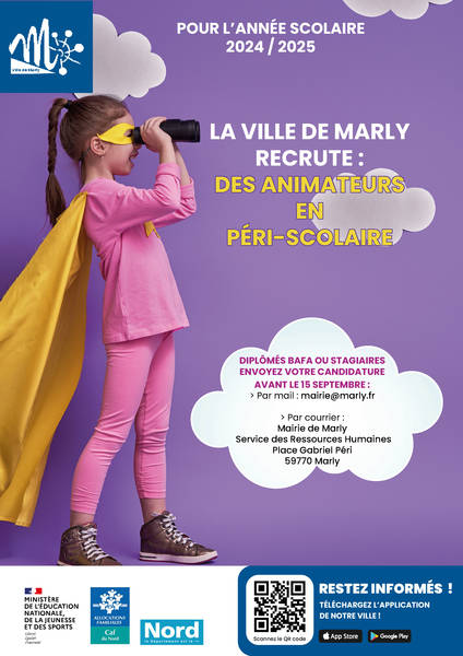 Diplômés bafa ou stagiaires ? Envoyez vos candidatures pour les postes d'animateurs en péri-scolaire pour l'année 2024/2025 !