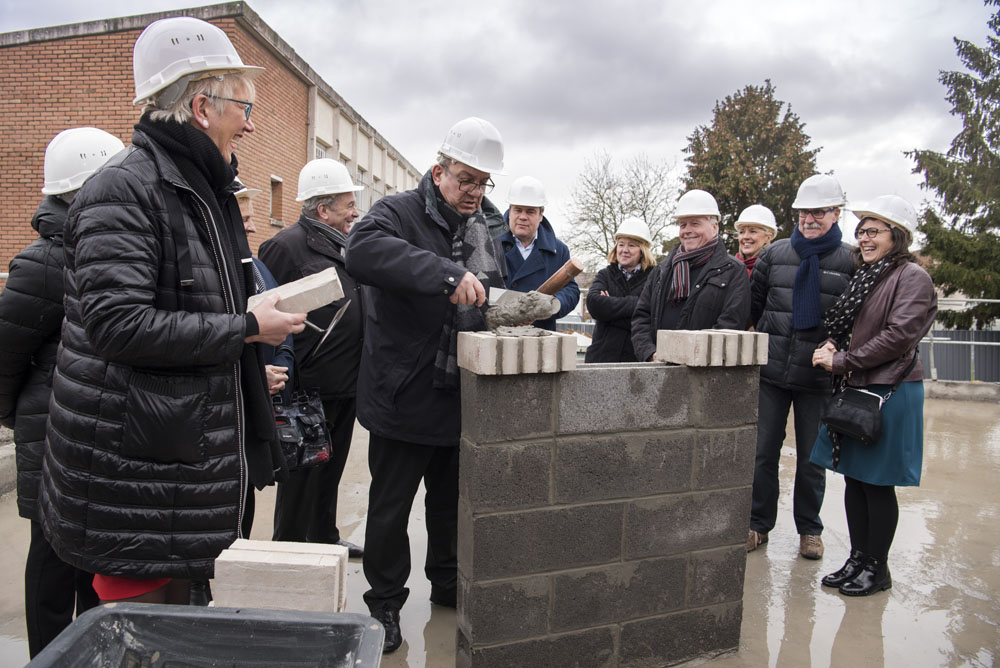 Vendredi 8 février 2019, en présence de Monsieur Laurent DEGALLAIX, Président de Valenciennes Métropole, de Madame Sophie MERIAUX, conseillère pédagogique représentant Monsieur l’inspecteur, de la directrice de l’établissement, Mme Frédérique DAVOINE, du Conseil municipal de Marly et des enseignants, Monsieur le Maire de Marly, Fabien THIÉMÉ, a posé la première pierre du futur restaurant scolaire de l’école Marie Curie !