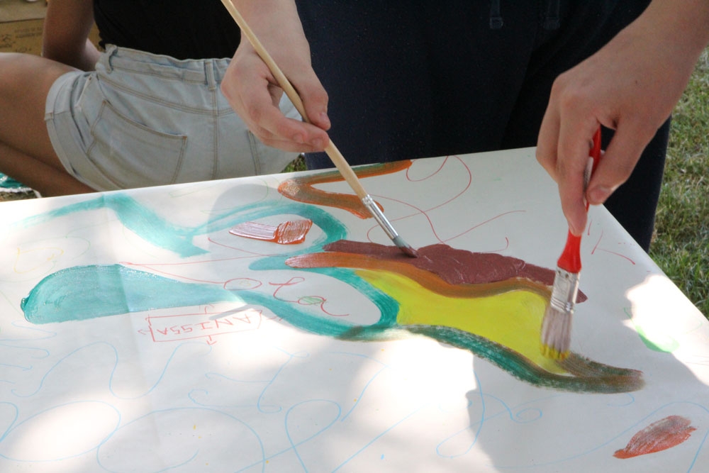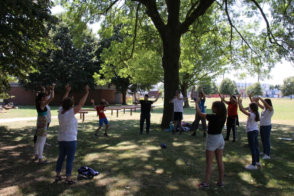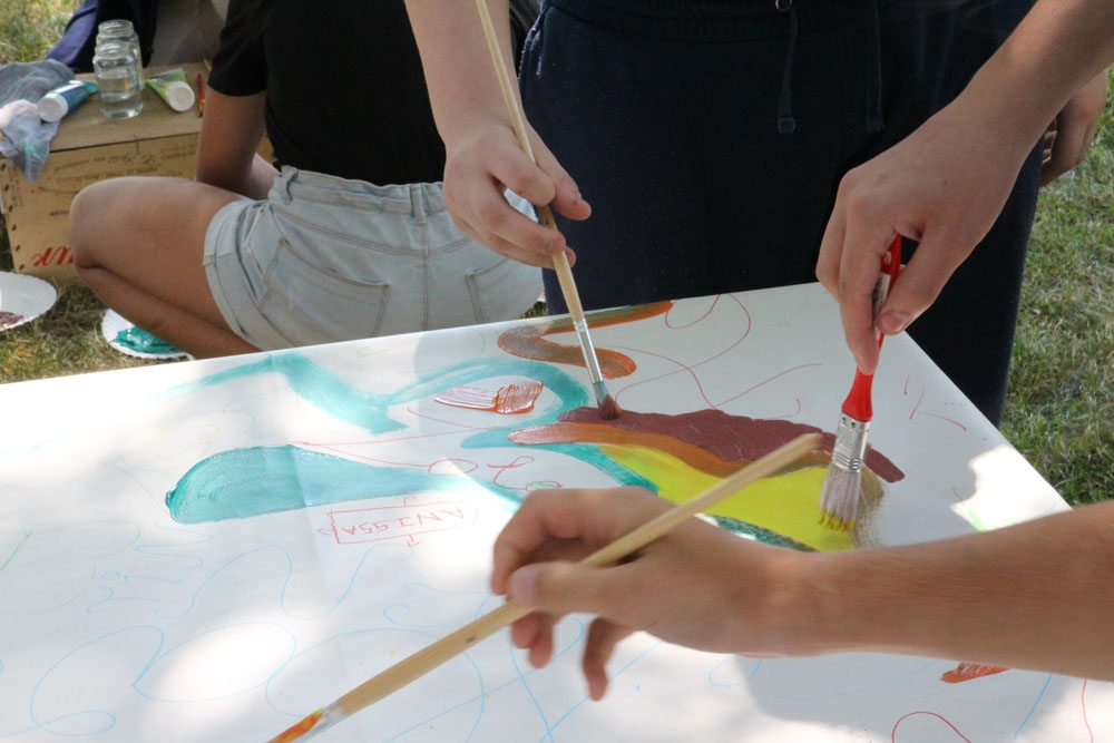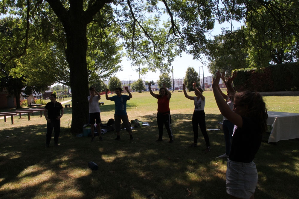 - Le mardi 9 Juillet 2019, un atelier d’Art-thérapie animé par Marie, intervenante dans le milieu artistique, s’est déroulé sur le terrain extérieur de la salle Aragon. Les jeunes du Club Ados ont commencé par faire des petits jeux de présentation et ont enchainé sur la conception d’une fresque collective.