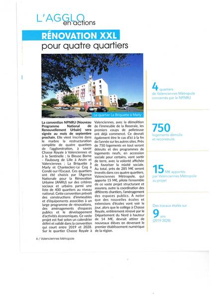 Au sommaire du dernier numéro du magazine de Valenciennes Métropole : le Nouveau Programme de Renouvellement Urbain (NPNRU).