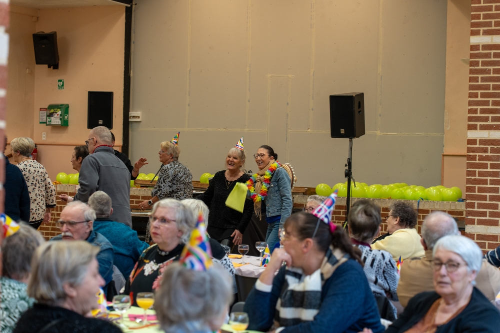 Le lancement de la fête a débuté par les vœux et un discours de nos élus, Joël Quentin et Laurence Morel. Un animateur a entraîné nos aînés sur la piste de danse, pendant que l'équipe du CCAS et ses bénévoles servait des crêpes et des boissons fraîches.