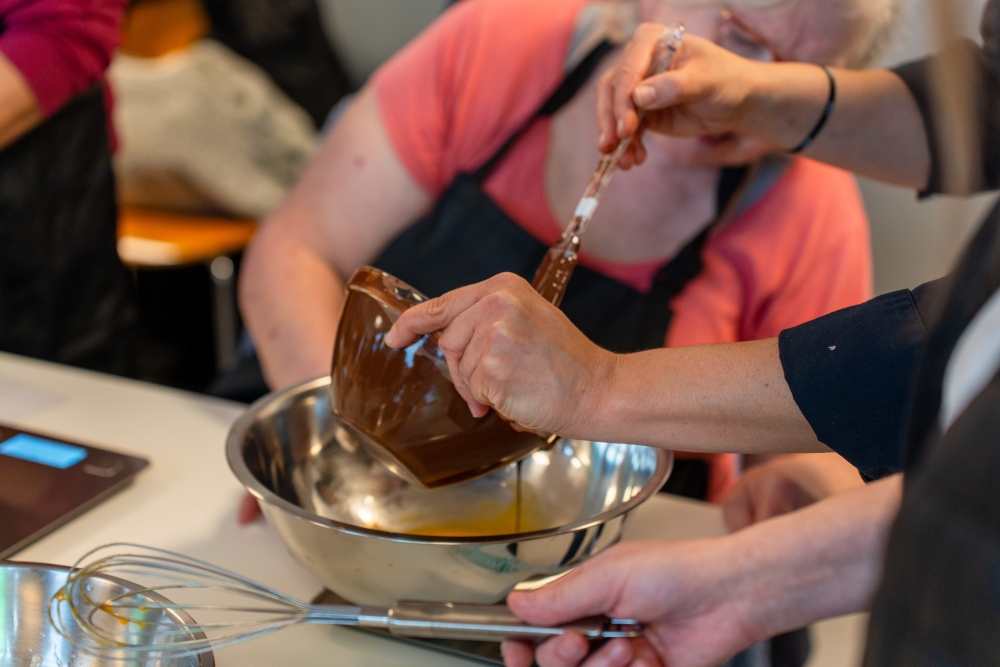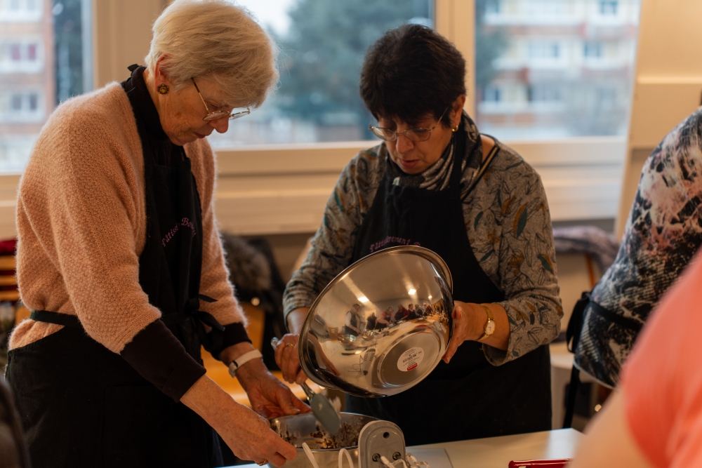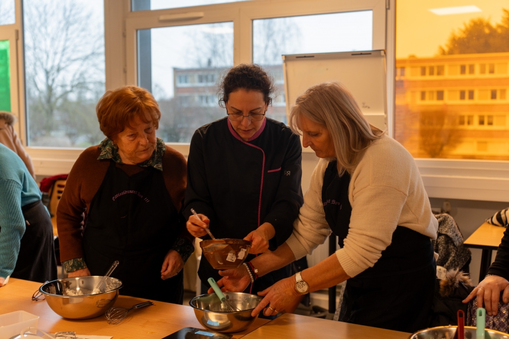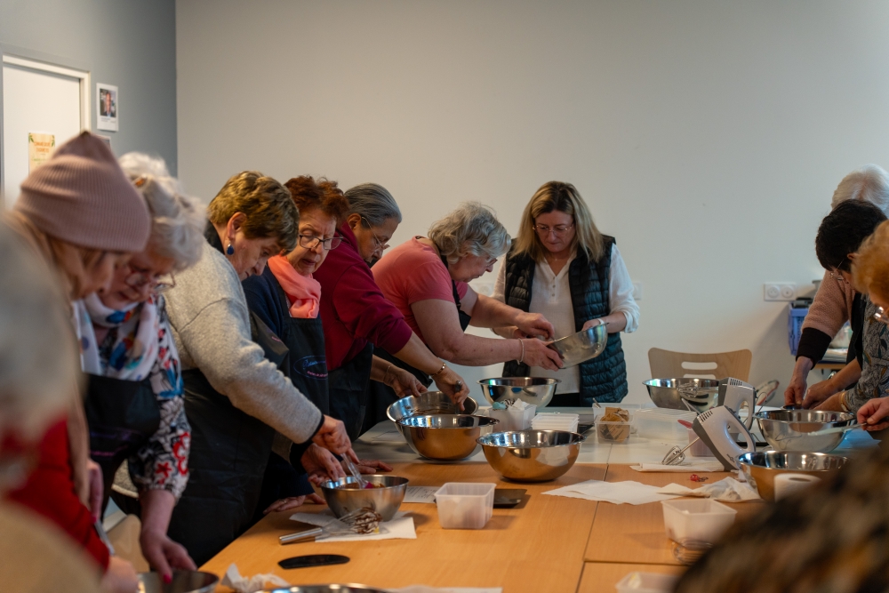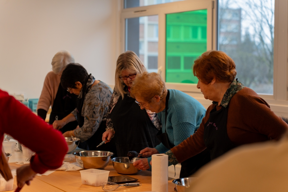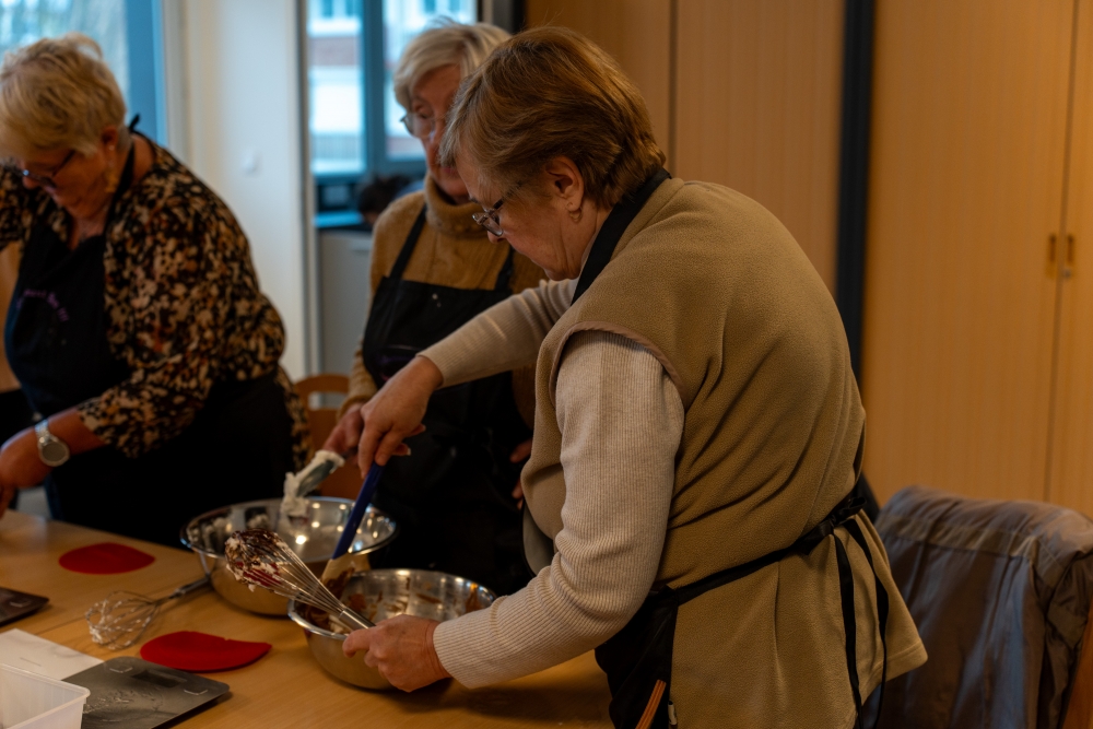 Ce jeudi 13 février, à la veille de la Saint Valentin, le CCAS a organisé un jeudi des aînés au centre social des Floralies, sur le thème de la pâtisserie ! Les participantes, guidées par l'animatrice de Pâtissièrement Bon ont réalisé de la mousse au chocolat et des coeurs feuilletés aux framboises, le tout sous le regard admiratif de Joël Quentin, élu de la ville.