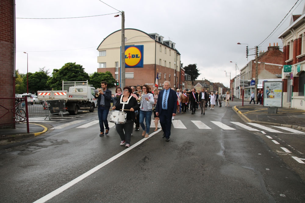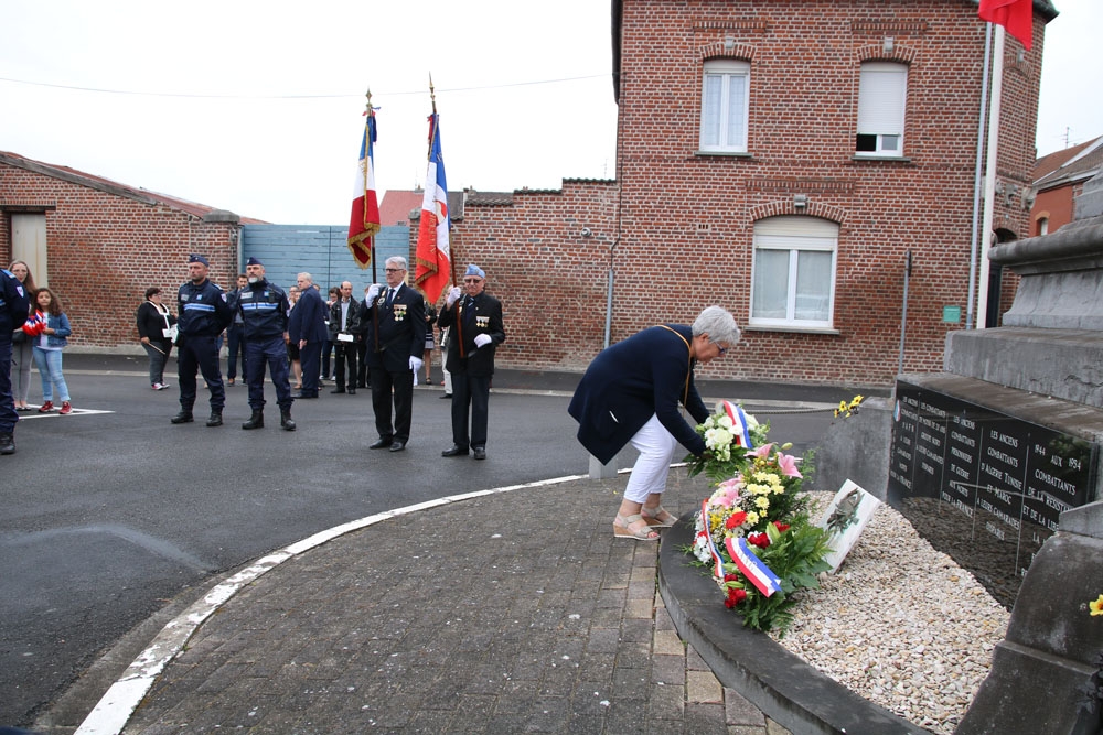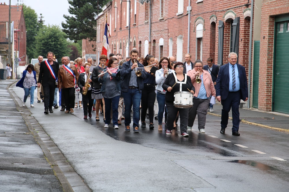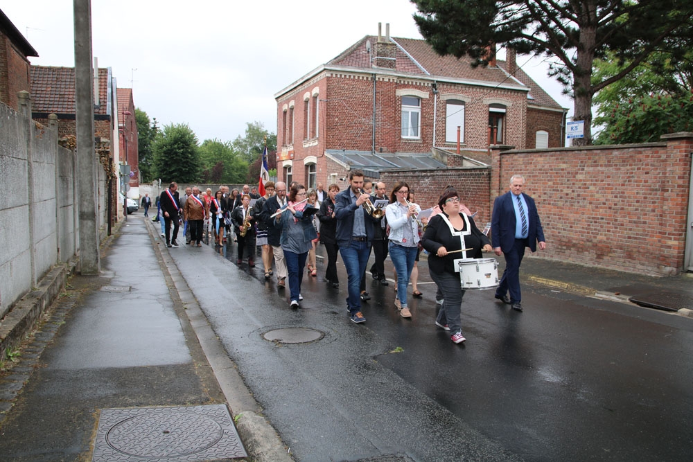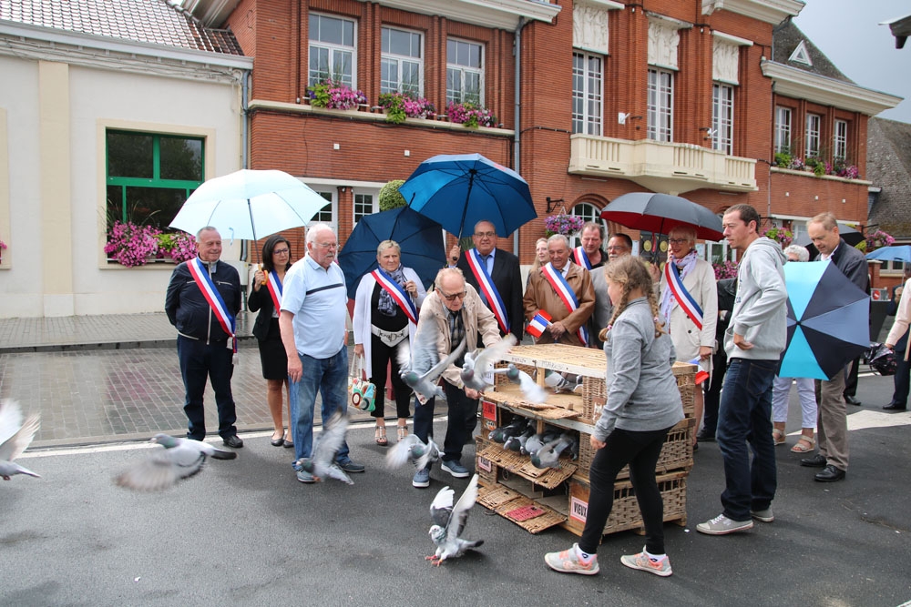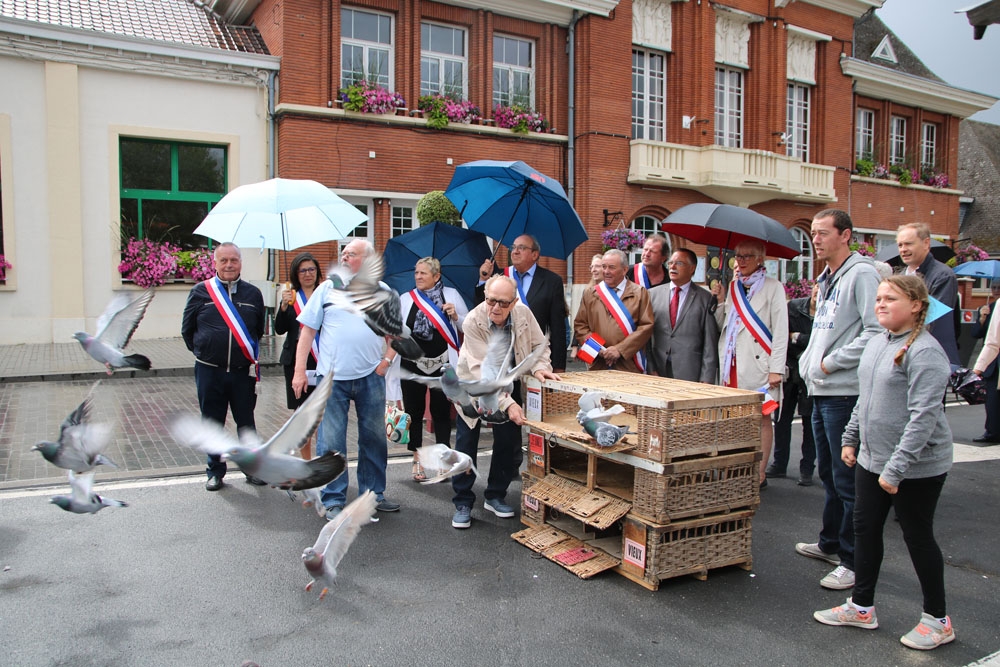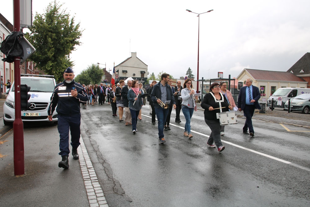 Après le traditionnel lâcher de pigeons par la société colombophile « L’Avenir de Marly », le cortège s’ébranle au rythme des musiciens dirigés par Thierry HUVELLE en direction du Monument aux Morts, pour le dépôt de gerbes et un moment de recueillement à la mémoire des victimes de tous les conflits à travers les époques.