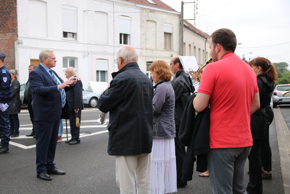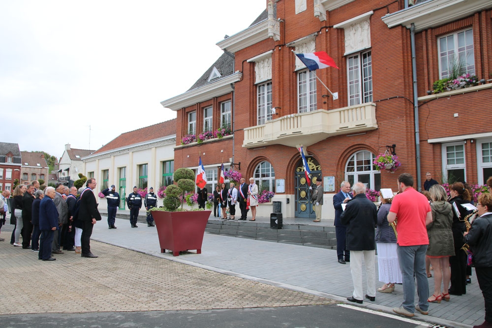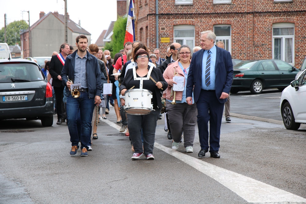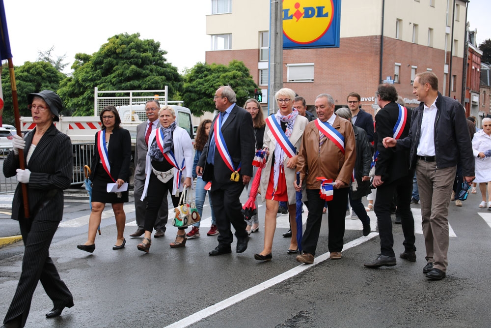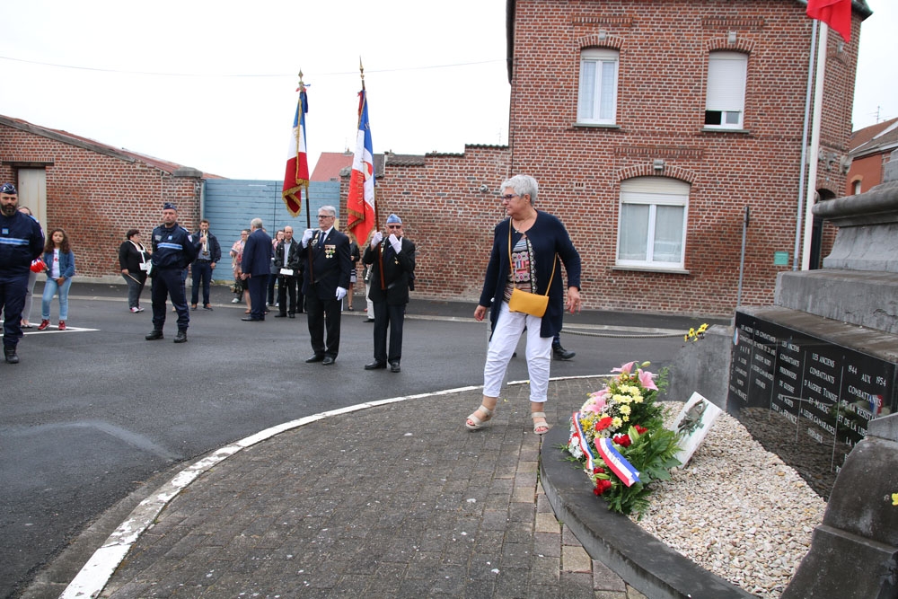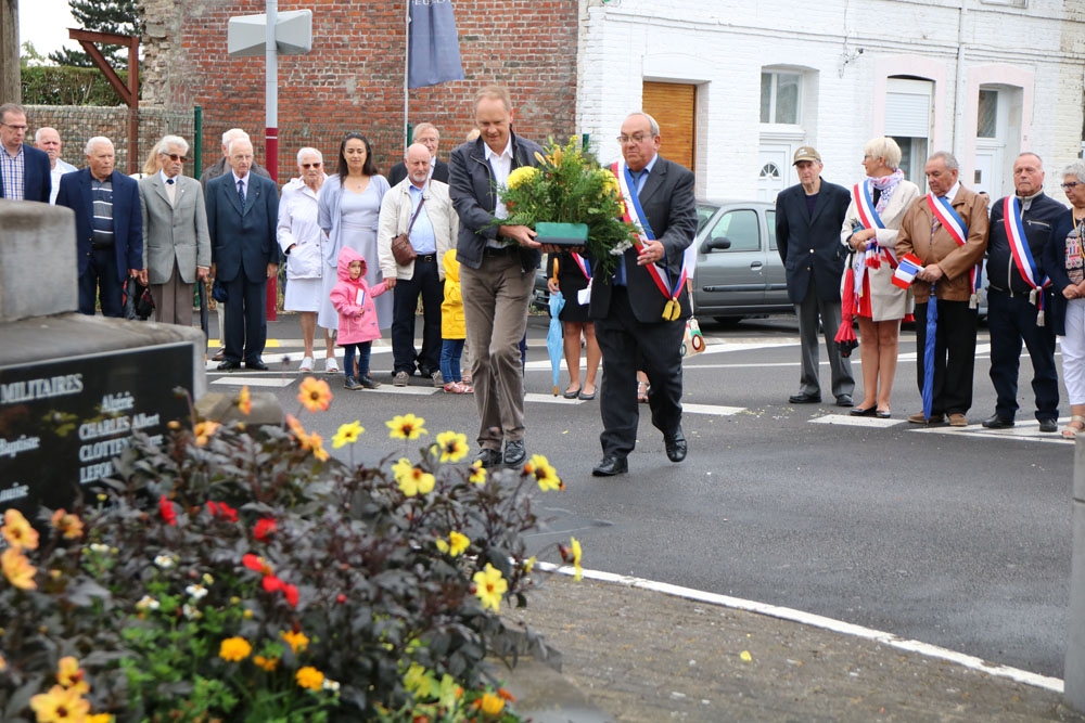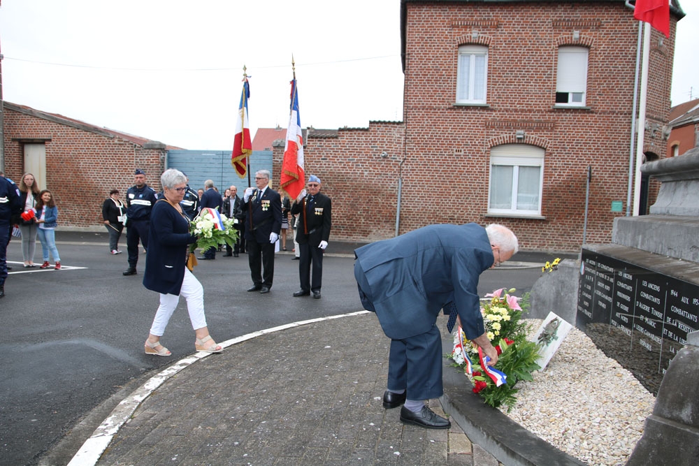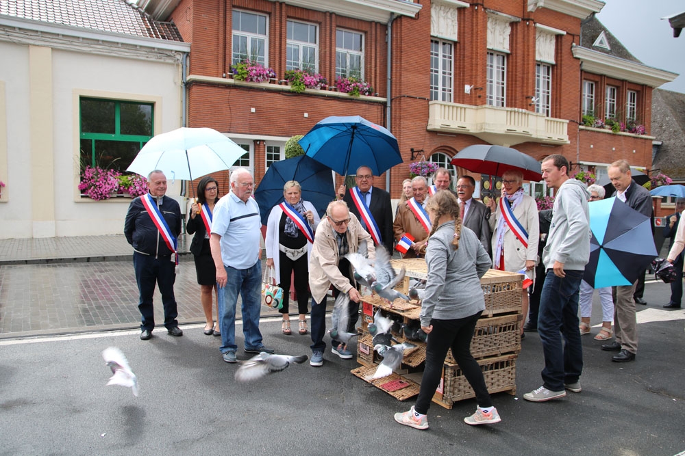 Après le traditionnel lâcher de pigeons par la société colombophile « L’Avenir de Marly », le cortège s’ébranle au rythme des musiciens dirigés par Thierry HUVELLE en direction du Monument aux Morts, pour le dépôt de gerbes et un moment de recueillement à la mémoire des victimes de tous les conflits à travers les époques.