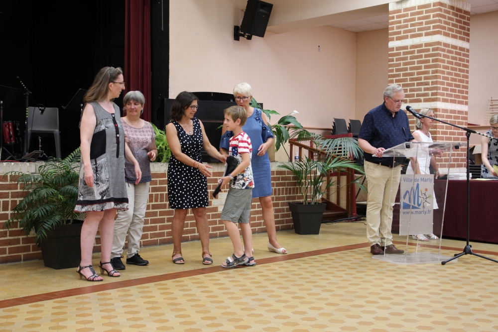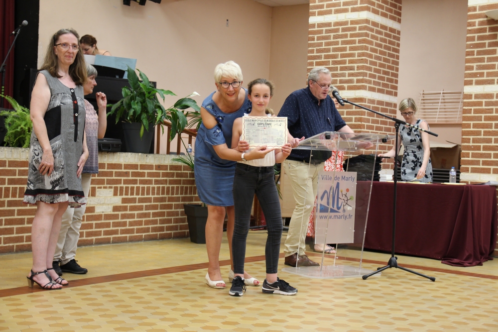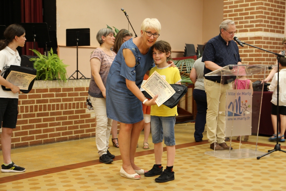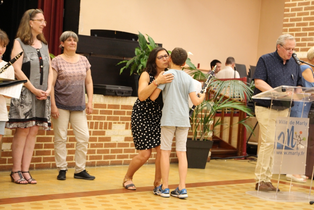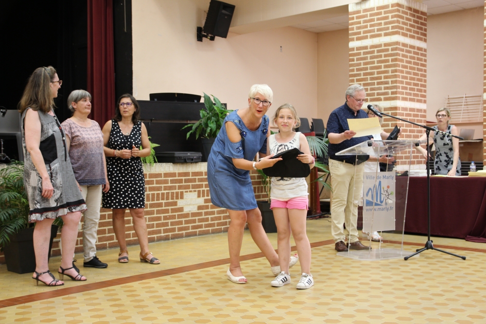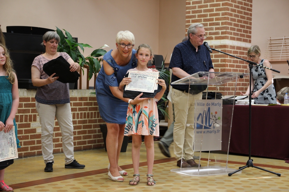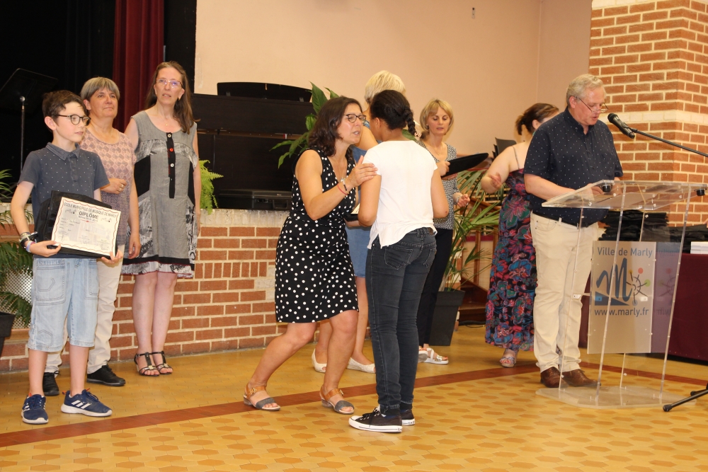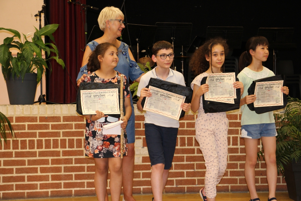Les classes de piano, accordéon, clarinette, violon, saxophone, guitare, trompette, flûte, percussions sans oublier les Petits Chanteurs de Marly ont ainsi été chaleureusement récompensés par l’adjointe à la politique culturelle, Laurence MOREL, l’adjointe aux fêtes, Virginie MELKI-TETTINI, et les conseillères municipales Elizabeth VAN ACKER et Emmanuelle BOUGUERRA qui représentaient pour l’occasion Monsieur le Maire, Fabien THIÉMÉ.