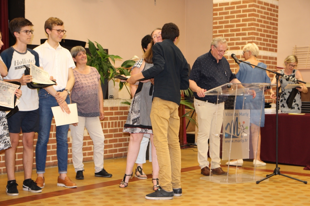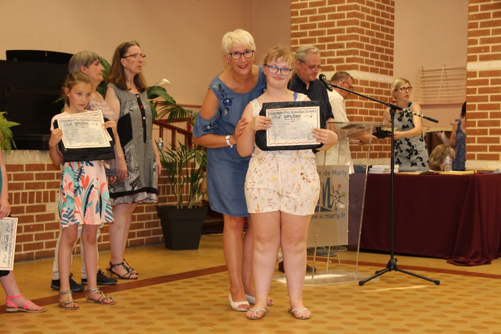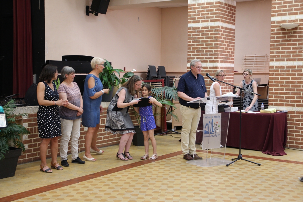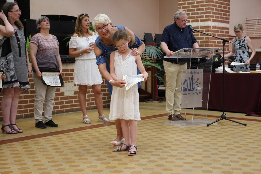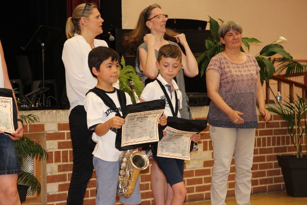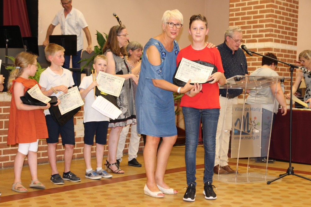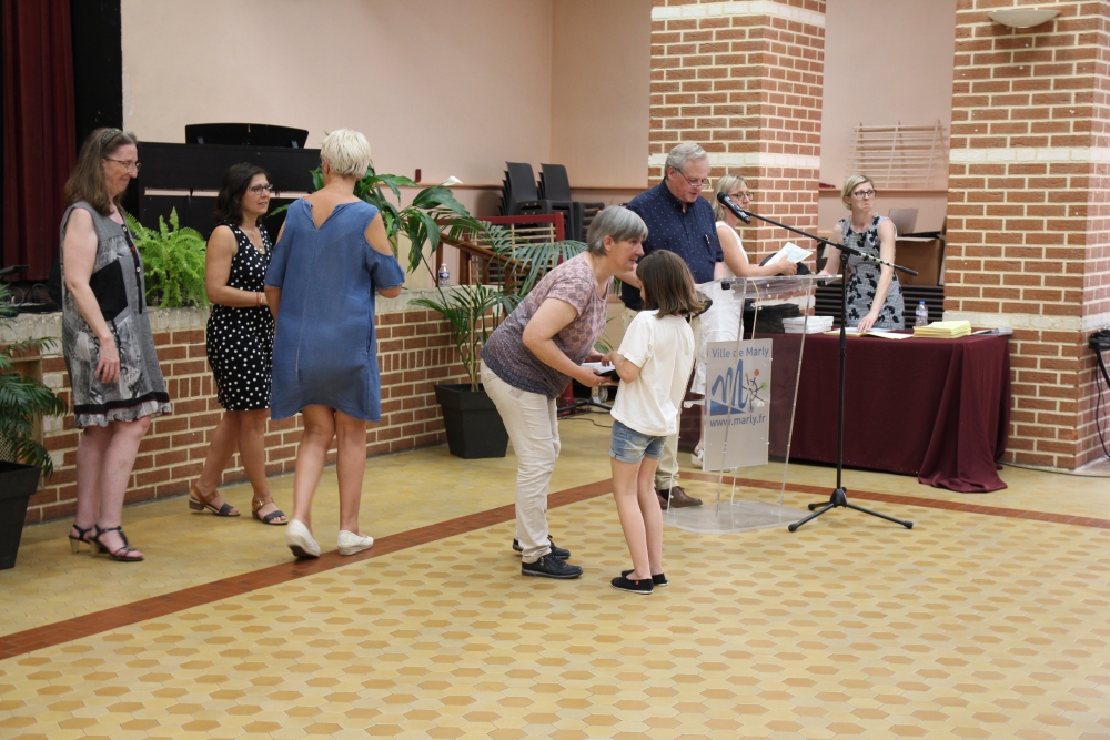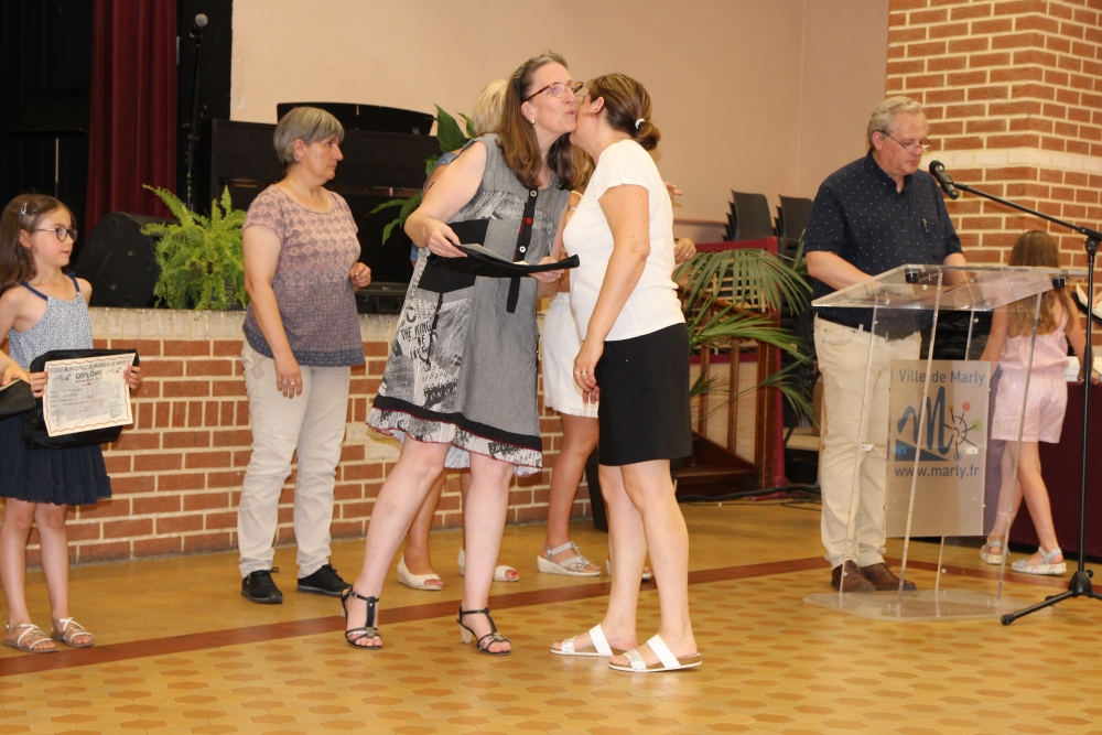 Les classes de piano, accordéon, clarinette, violon, saxophone, guitare, trompette, flûte, percussions sans oublier les Petits Chanteurs de Marly ont ainsi été chaleureusement récompensés par l’adjointe à la politique culturelle, Laurence MOREL, l’adjointe aux fêtes, Virginie MELKI-TETTINI, et les conseillères municipales Elizabeth VAN ACKER et Emmanuelle BOUGUERRA qui représentaient pour l’occasion Monsieur le Maire, Fabien THIÉMÉ.