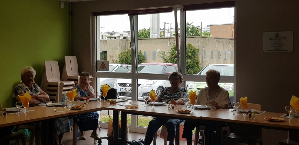 Ce mardi 16 juillet 2019, pour marquer le début de l'été, les membres du Club du 3ème Âge Guy Ville se sont retrouvés dans leur local à la Maison de quartier de la Briquette pour partager un repas que leur avait préparé le traiteur local.