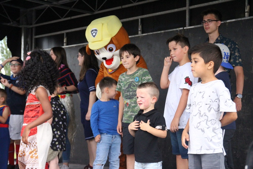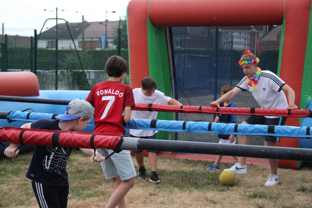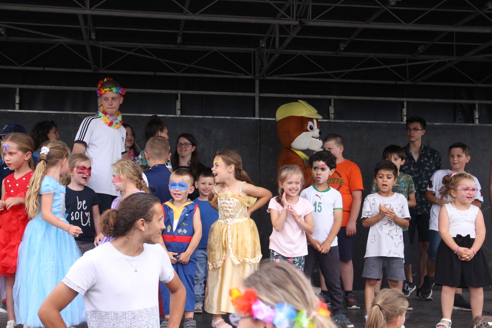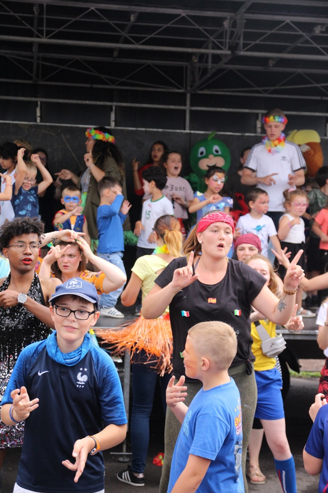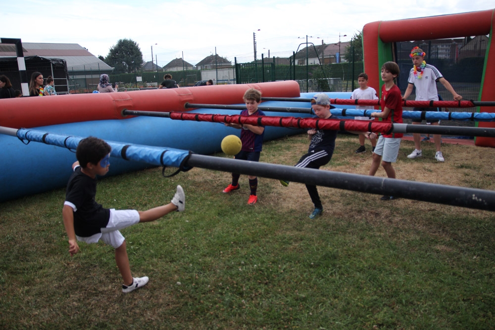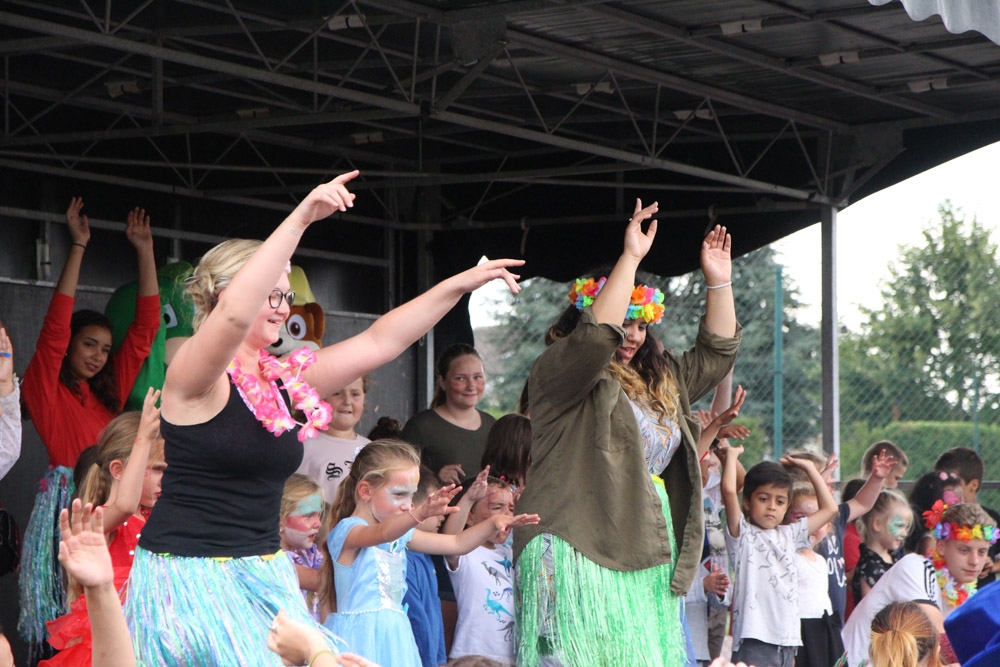 Un baby-foot géant avait été installé à l’extérieur de la salle, ainsi qu’une pêche aux canards dotée de nombreux lots, un parcours « toile d’araignée » et un circuit de karts. Pour finir cette après-midi, les enfants et les animateurs se sont retrouvés pour une démonstration des danses qu’ils avaient répétées tous les matins depuis le début des accueils du mois de juillet.