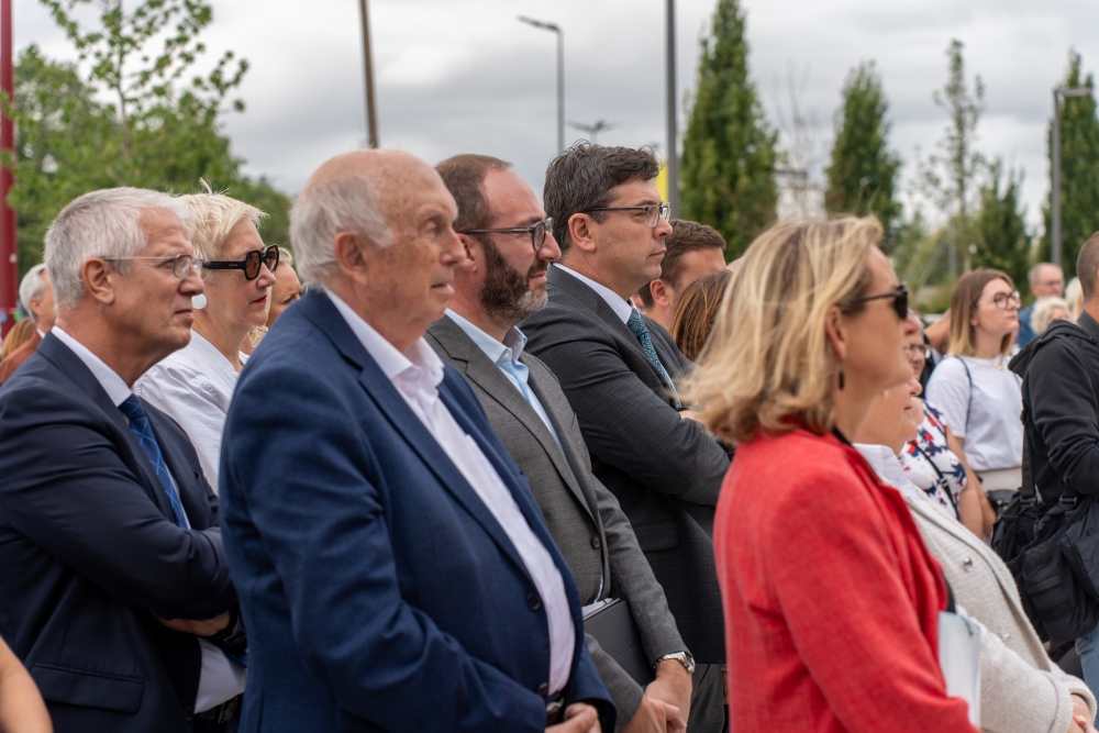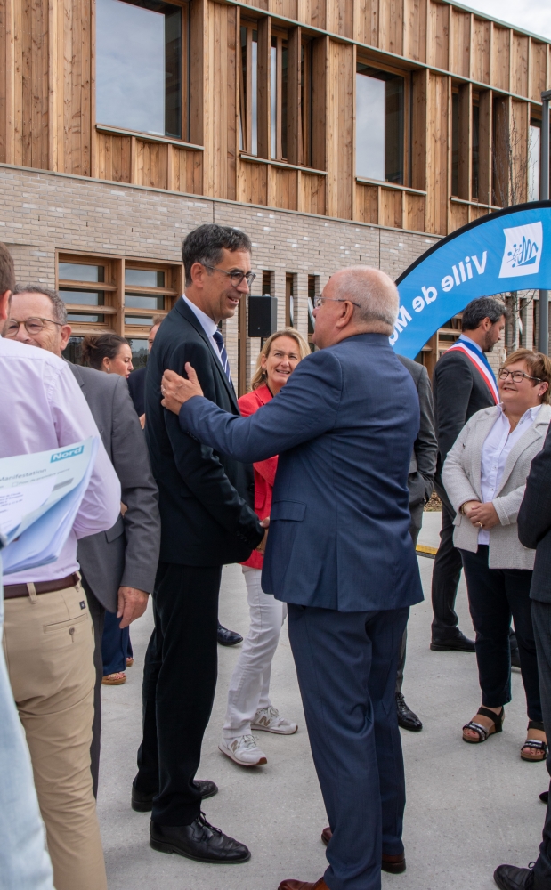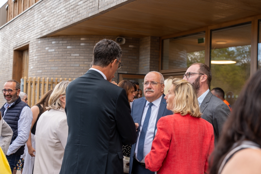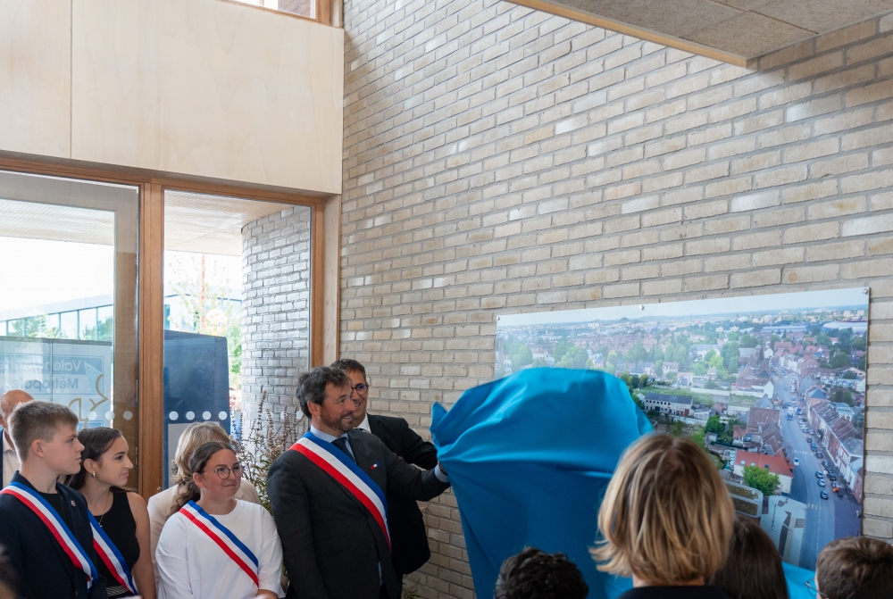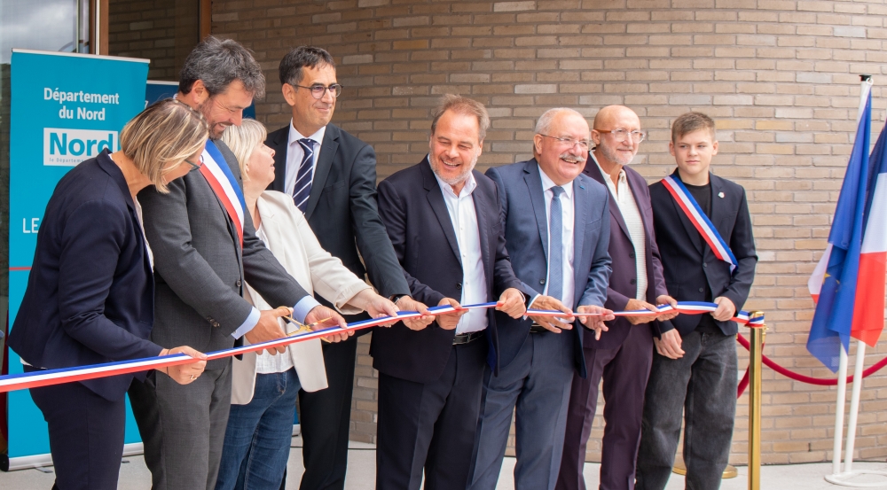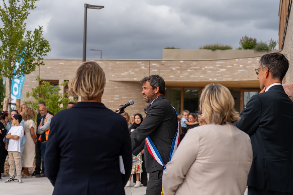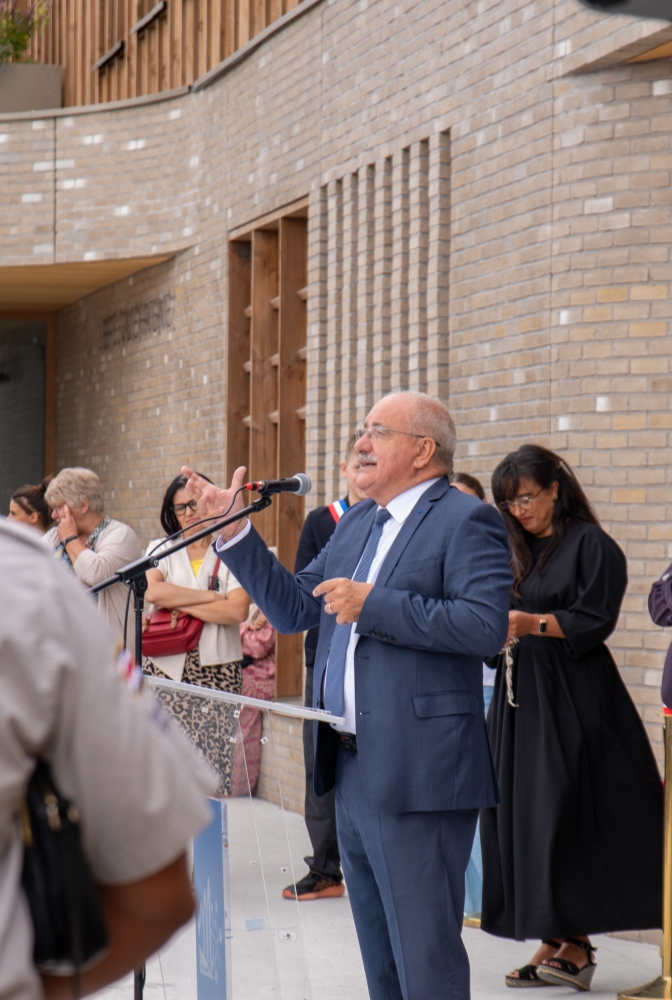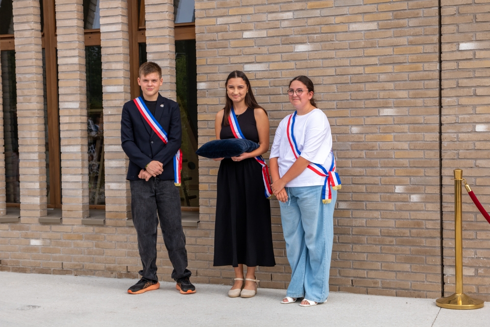Lors de cette inauguration en présence notamment du Conseil Municipal, du Conseil Municipal des Enfants et de nombreux invités, Monsieur le Maire a pris la parole pour remercier tous les acteurs du projet, pour le soutien financier de l’Etat, de la Région, du Département, de l’Agglomération de Valenciennes Métropole et de la CAF. Il a également remercié toutes les équipes impliquées pour que ce projet prenne vie aujourd’hui, dans le quartier en plein renouvellement urbain de La Briquette. L’école, longtemps appelée « Ecole dans les arbres » au cours du projet, est un trait d’union entre les quartiers et un bâtiment inscrit dans l’avenir tant par ses formes architecturales que par sa vocation à instruire les petits citoyens de demain. Alice Arnould, inspectrice de l’Education Nationale a ensuite pris la parole, suivie par Aurore Colson, Conseillère régionale des Hauts-de-France, qui représentait Xavier Bertrand, Président de la Région des Hauts-de-France. Laurent Degallaix, Président de la Communauté d’Agglomération de Valenciennes Métropole et Christian Poiret – Président du Département du Nord ont ensuite pris le micro pour à leur tour féliciter le Maire et souhaiter une belle rentrée à tous : équipes pédagogiques, parents et bien sûr enfants. Stéphane Costaglioli, Sous-Préfet de Valenciennes a terminé les discours avant d’inviter les enfants du Conseil Municipal de Marly à les rejoindre afin de procéder à l’inauguration officielle.